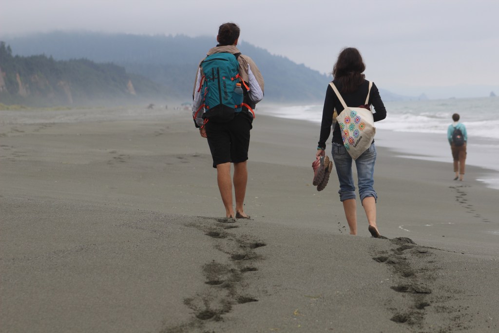 Hem trobat rutes per tots els gustos, però les nostres estan entre les llargues (6 milles o 10 km) i les molt llargues (12 milles o 20 km). Això és el que no saben ni el Kai ni la Sira, als que aconseguim mantenir motivats durant la primera hora, a partir d’aquí l’ànim comença a decaure de manera perillosa. De totes maneres està tot planificat: els més ambiciosos plantegen arribar fins al mar, que té el seu morbo, tenint en compte que estem en mig d’un bosc ple de falgueres i molsa, i per als més calmats la ruta arriba fins a un trencall on podem fer una circular.
