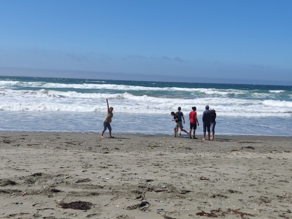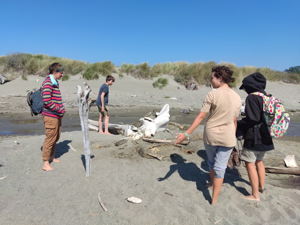 Una magnífica excursió entre boscos, aquesta vegada molt més mediterranis, ens ha portat fins a un petit llac i finalment a un camp de dunes que, quan la cosa ja es començava a complicar i els ànim amenaçaven de nou amb una nova debacle, a desembocat en una immensa platja al pur estil americà: vent fred, onades colèriques i una sorra fina que permetia jugar a qualsevol cosa.