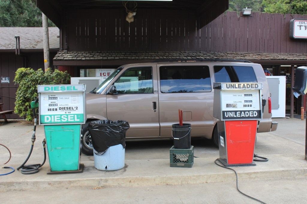 Dir que estava nerviós seria evident, poca cosa. No teniem cobertura ni casi posició amb el GPS, així que ens guiavem pel mapa de carreteres del 2005 que hi havia a la furgoneta i quan ja començavem a buscar un lloc on deixar ben aparcada al furgoneta per continuar a peu, va aparèixer Idleyld Trading Post. Mai un lloc tan ruinós, decadent i vingut a menys m’havia donat una alegria tant gran. Bufff!!! “Ompli el diposit senyora! Fins que li surti la benzina pels costats”.