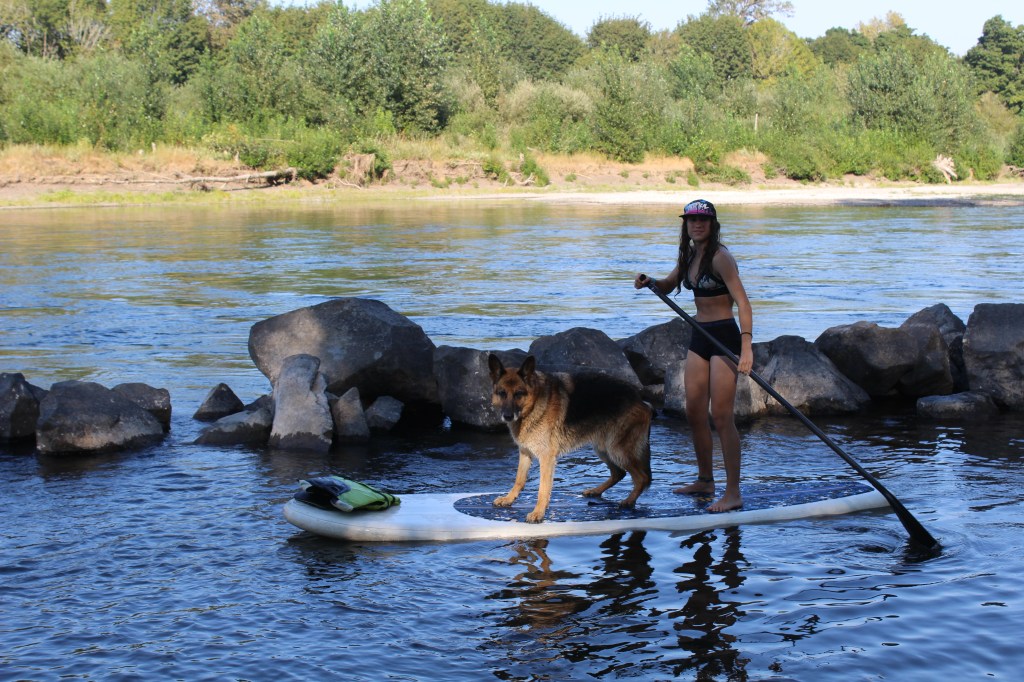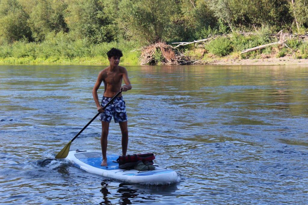 Doncs això, una altra! Avui hem decidit anar al riu amb l’excusa d’ensenyar-li al Marco la zona. I, aprofitant que fa calor, remar una estona i capbussar-nos. Hem agafat les dues taules de paddle, quatre armilles salva-vides i els xiulets corresponents. També he agafat la documentació (passaport i carnet internacional de conduir). Els “famosos” permisos de navegació els hem passat per alt. Parlant amb en Dave (que surt a remar quasi cada dia al riu) no en té, no li han demanat mai i no creu que en necessitem per portar aquestes taules de paddle.