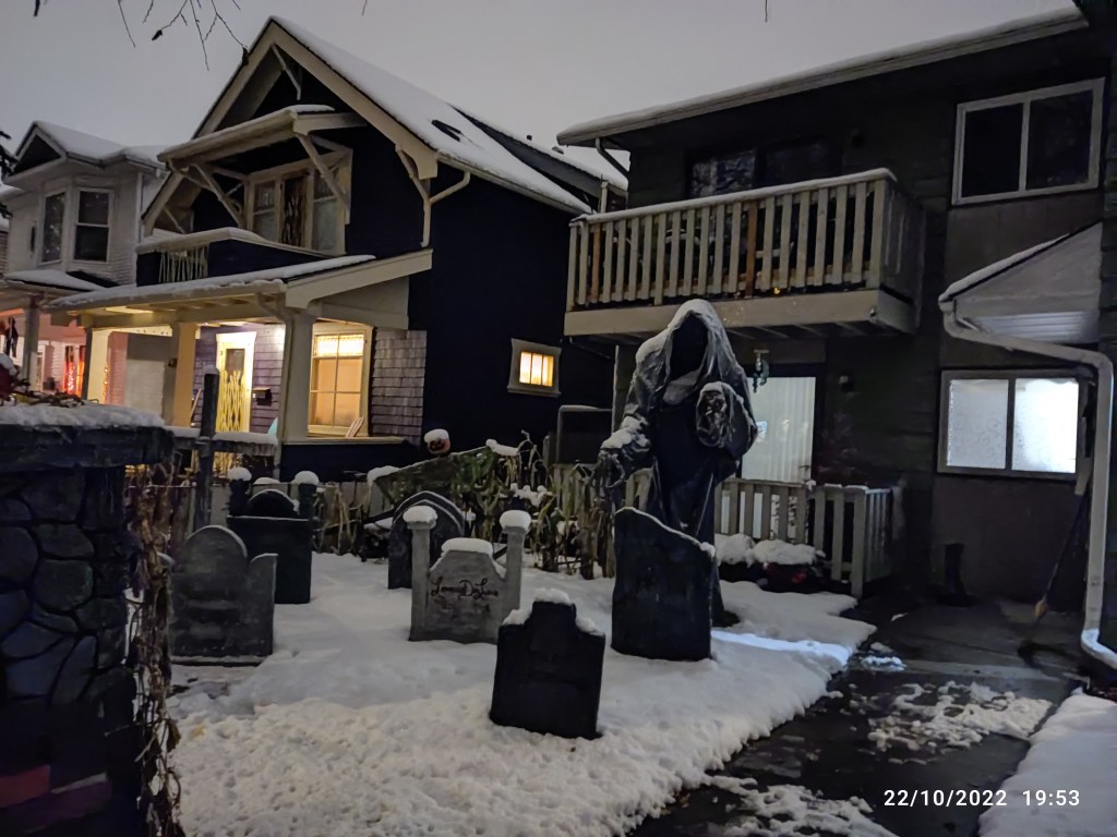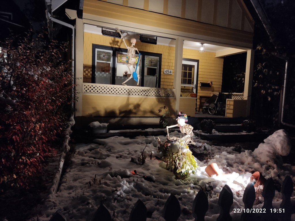 Ja fa uns dies que els jardins i les cases del barri es van omplint d’objectes relacionats amb la tardor i, sobre tot, amb el Halloween. Sí, ja sé que algunes lectores d’aquest blog sou força contràries a aquesta curiosa tradició i que defenseu a ultrança la nostrada Castanyera. El cas però, és que som al Canadà i aquí la tradició és celebrar el Halloween, sense complexes, amb tot el seu esplendor.
