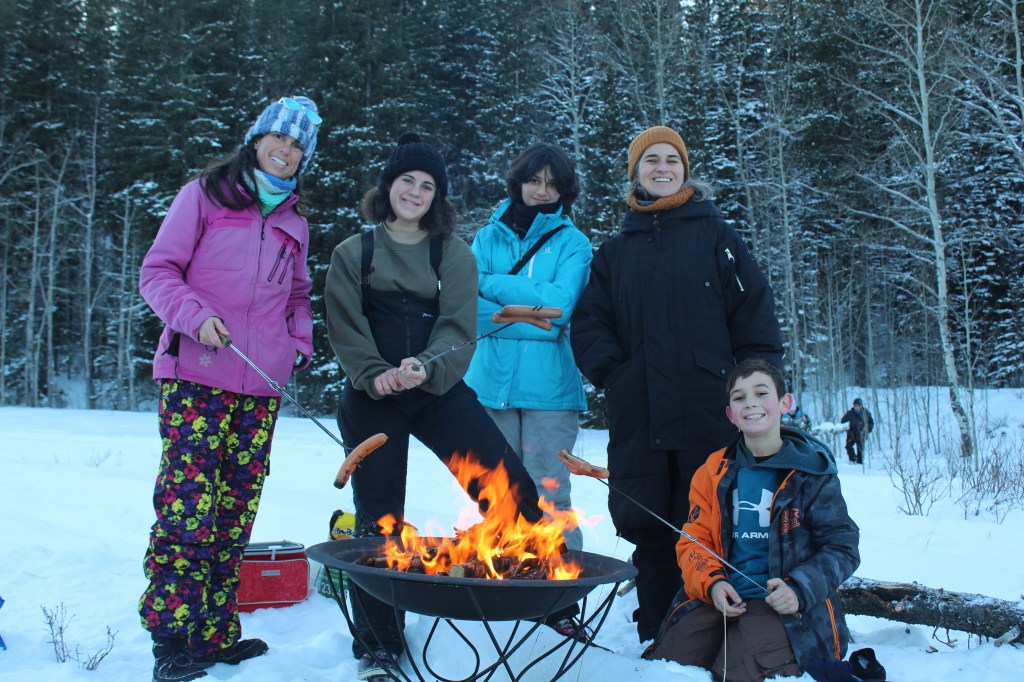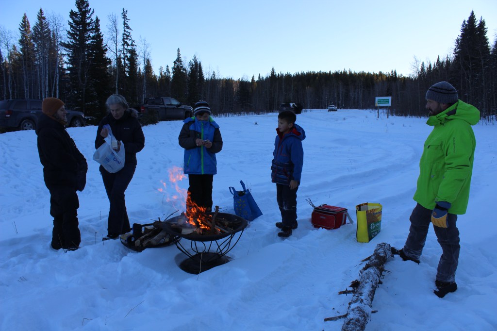 La nostra sorpresa és majúscula quan, a l’arribar als cotxes, la família canadenca amfitriona treu una mena de barbacoa portàtil i els marshmallows. L’Àngels hi afegeix el pa, les salsitxes i les salses. Amb un moment ja estem tots asseguts a la vora del foc esclafant-nos les mans i torrant salsitxes i marshmallows. En aquest moment ens rendim a l’evidència que som uns simples aprenents i que serà difícil arribar al nivell canadenc de “professionalitat” pel que fa a les barbacoes (en el sentit ampli del terme).