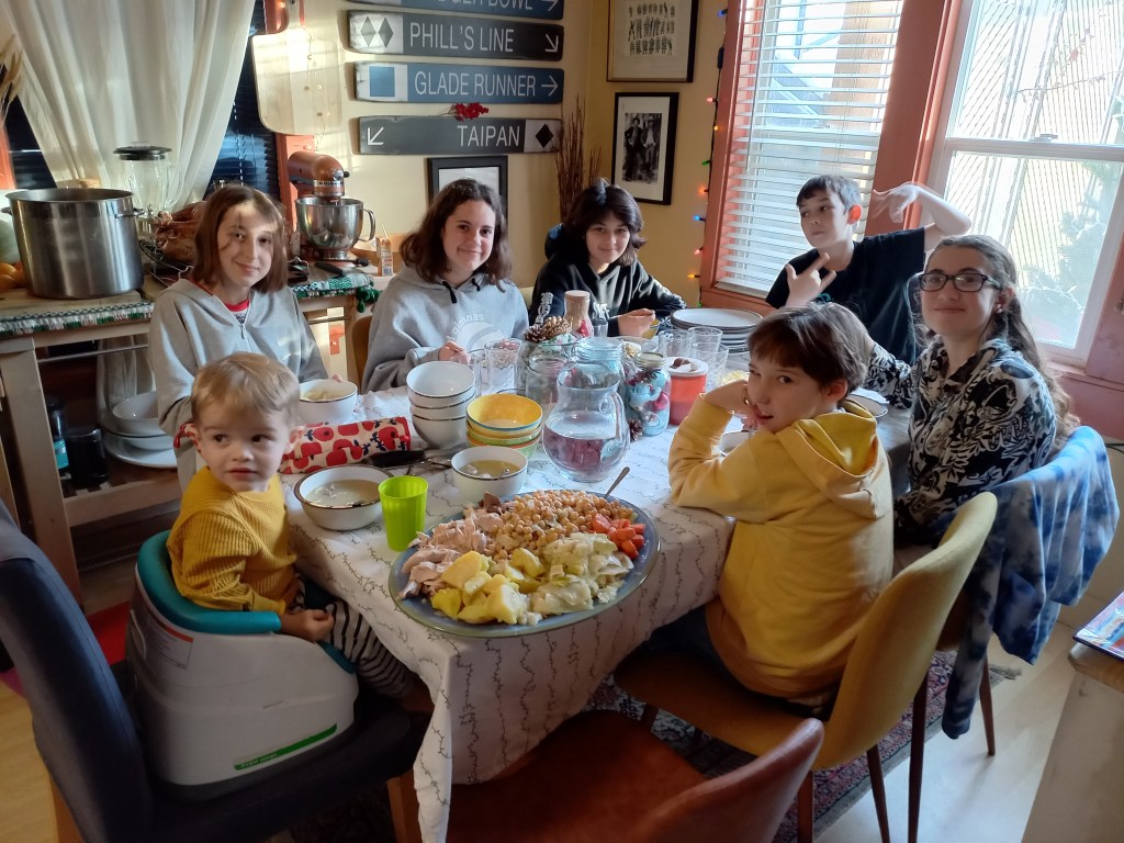 I ja està! Cervesa en mà, conversa políticament correcta i fàcil per al meu raquític anglès i anar fent amb el pica-pica d’embotits i formatge. Van arribar la resta de convidats amb la tercera birra i quan ja m’atrevia a parlar de tot. Eren quasi les 15 h, la carn continuava al forn i no semblava que hi hagués pressa per menjar, fins que la pressió infantil es va fer massa evident. Primer taula de petits, amb les mares i l’avi donant instruccions, xerrant i rient per després enviar la canalla a veure la tele (per què sortir a jugar al parc aquí no s’estila) i començar amb el primer i veritable dinar de Nadal. La sopa de galets immensa, les croquetes boníssimes i el gall d’indi increïble, es desfeia a la boca i ha acompanyat de les verdures i el béicon, no hi havia qui deixes res al plat. Tot plegat regat d’un vi força correcte que va anar passant com si res.