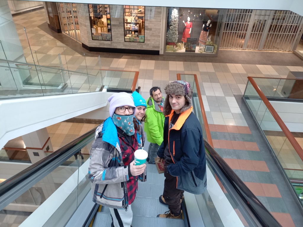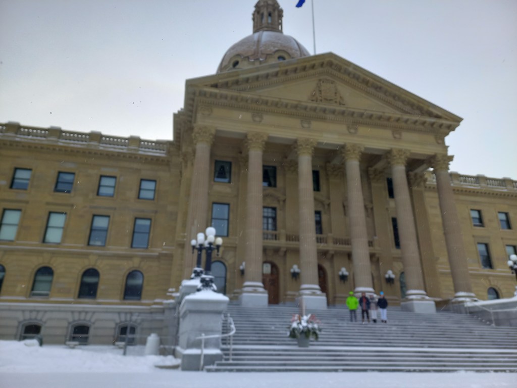 Ens arribem en cotxe fins al Down Town. Passeig ràpid pels voltants d’Alberta Legislature Building, el que seria el Palau de la Generalitat a Catalunya. I en acabat ens “refugiem” a un dels centres comercials que hi ha al Down Town. No som gaire de centres comercials, però nevant i a -20 °C, no tenim moltes opcions més! Dinem allí i fem temps per anar al partit del Diego.