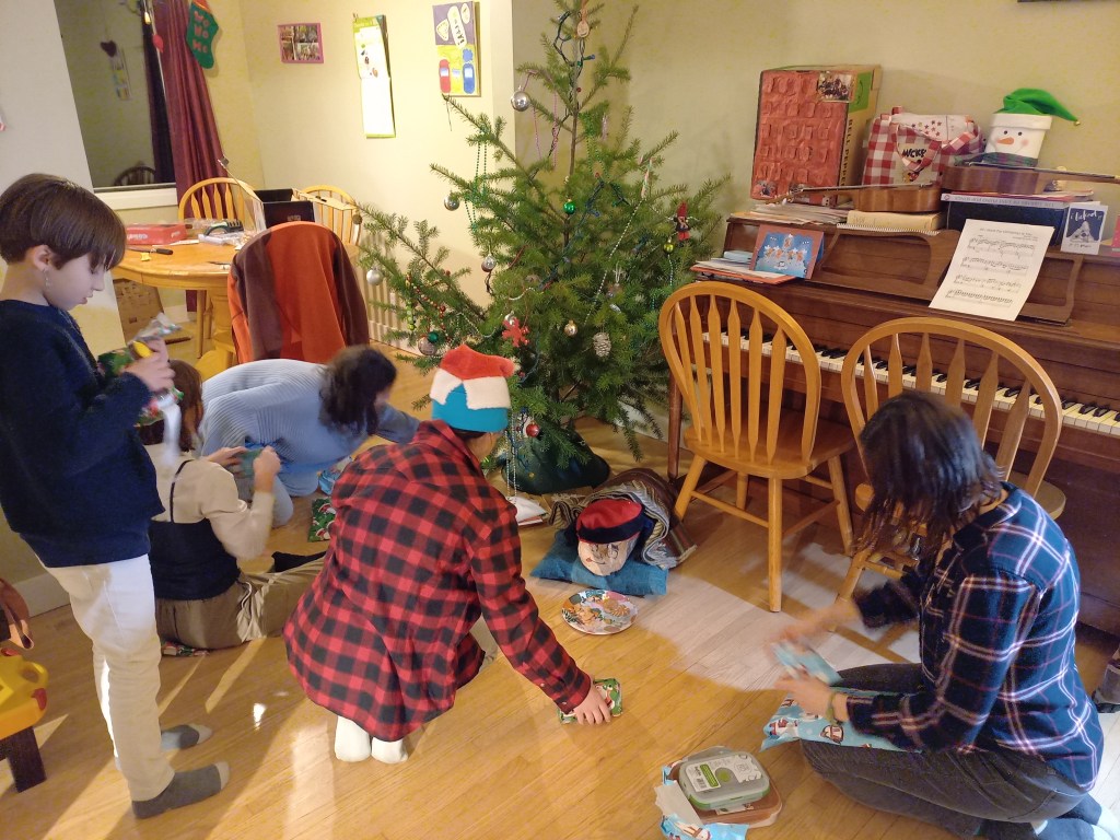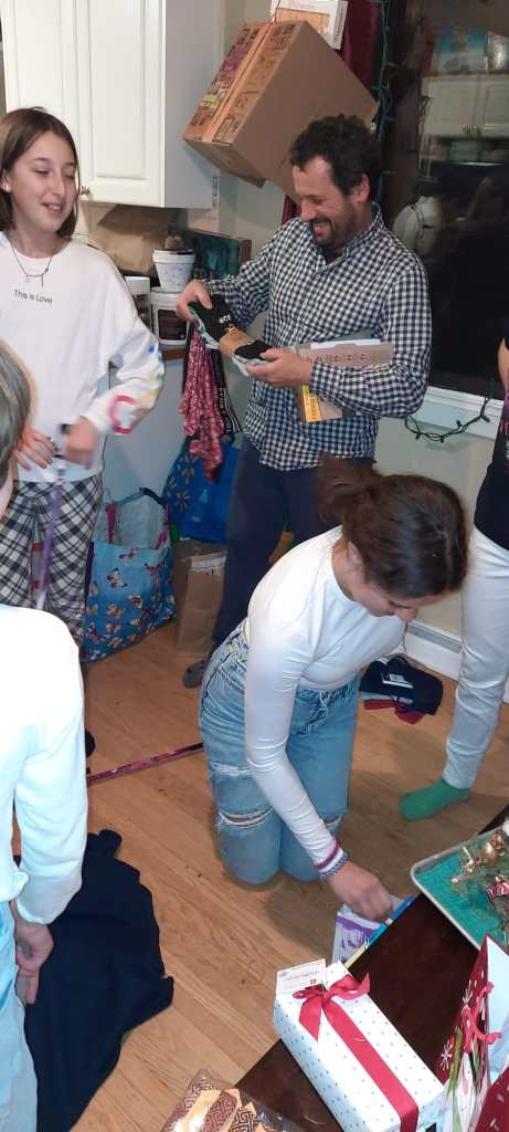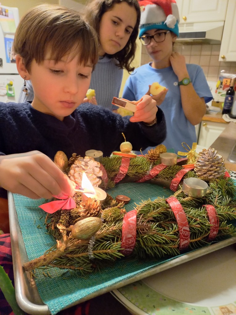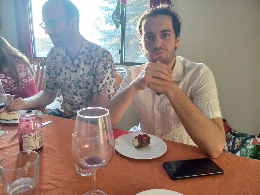 El dinar de Nadal el fem també a casa la Carmen. Ens hi apleguem setze. L’Alexandra, l’amiga colombiana de la Carmen amb la seva mare i els seus fills, la Judit i la Júlia (sabadellenques expatriades a Canmore), l’Imanol (profe visitante del País Basc), la Carmen amb les seves filles i nosaltres, amb en Diego com a incorporació d’última hora que arriba des d’Edmonton al més pur estil anunci de turrons El Almendro “Vuelve a casa por Navidad”. Pinxos bascos, caldo de Nadal, carn arrebossada a la teca, pernil serrà, turrons, polvorons i pastís de formatge. La celebració és una curiosa mescla de tradicions txeques, basques, catalanes, colombianes i canadenques que culmina amb tots la canalla fent cagar el Tió.