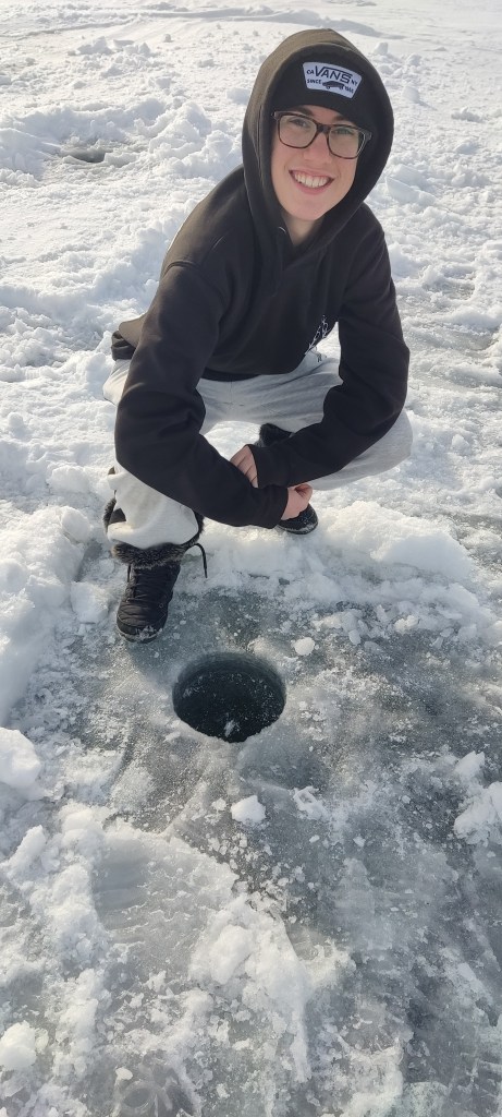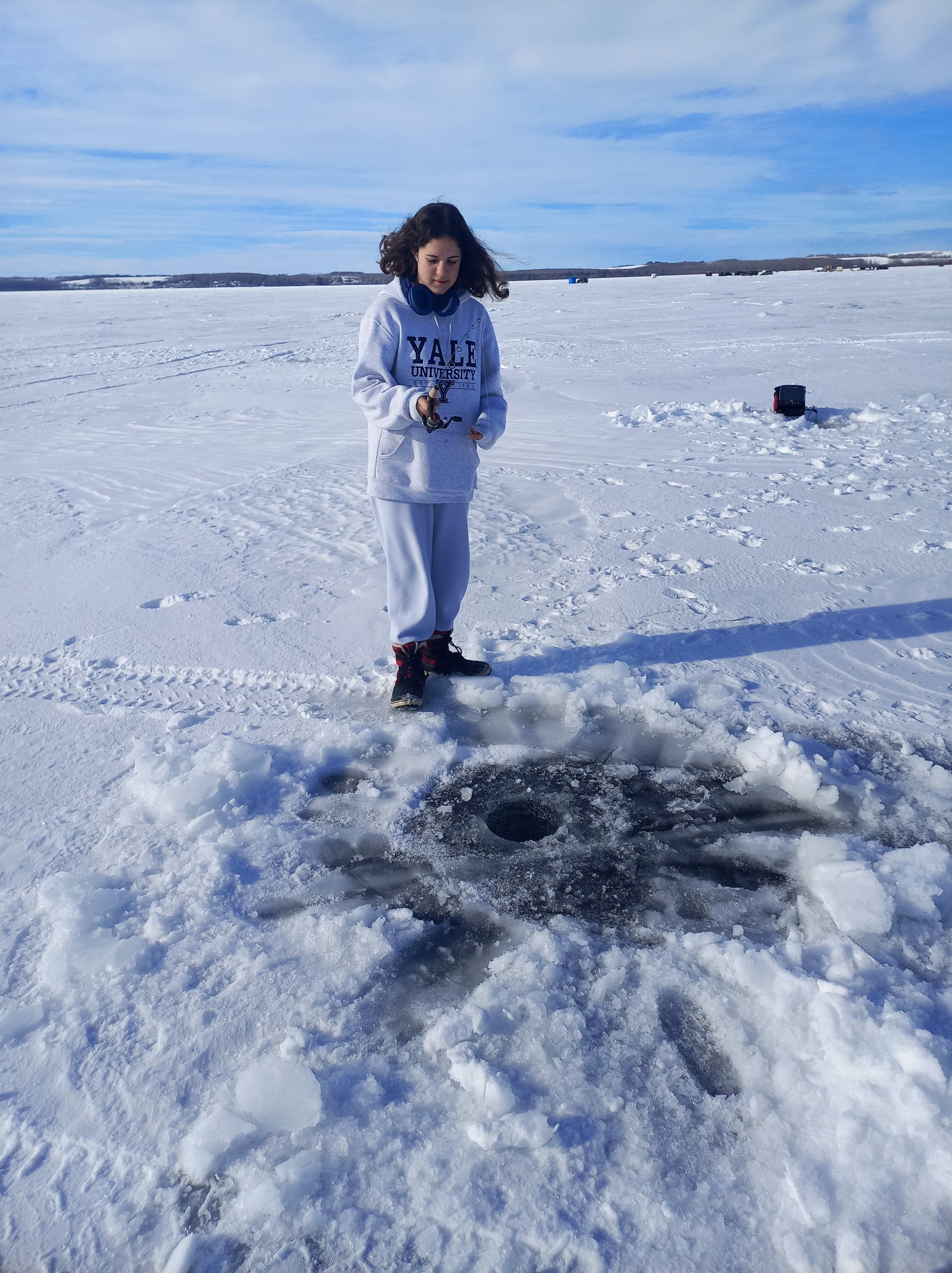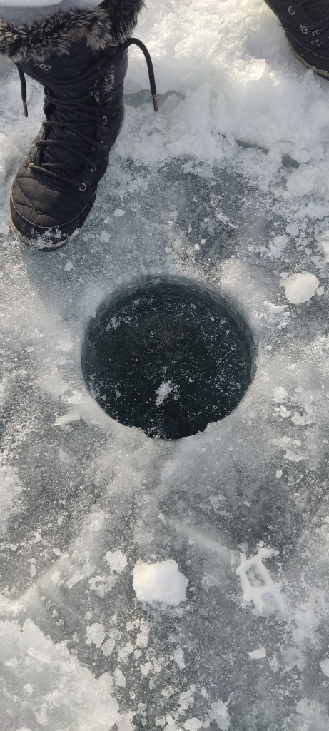 Però encara teníem pendent el gran món de la pesca, i clar, el de la pesca en gel! Aquest és un esport (si els escacs són un esport, la pesca també pot ser-ho!) que sempre m’ha admirat. Com aconsegueix la gent passar-se les hores esperant, o movent la canya, o tirant-la amunt i avall… En fi, que hi ha molta gent que ho practica i, per tant, alguna cosa ha de tenir, així que s’ha de provar.