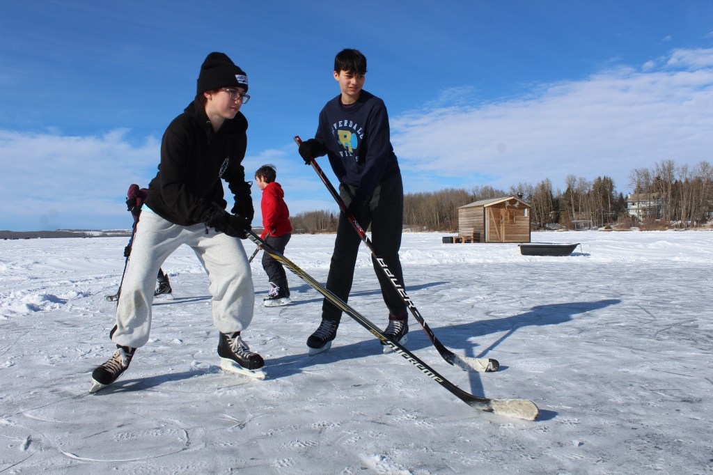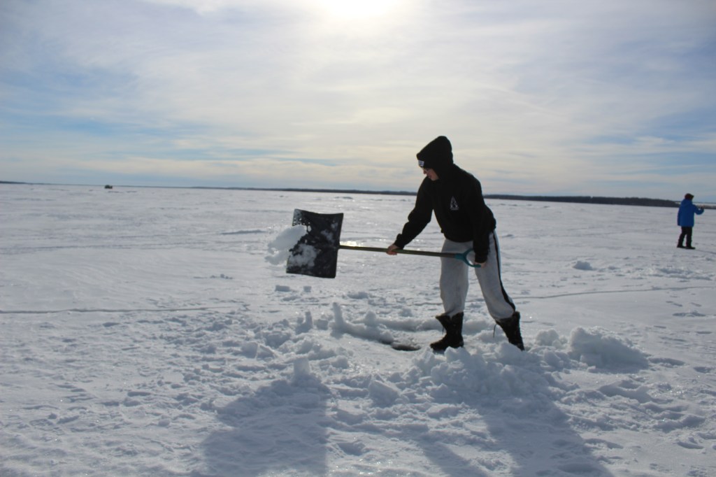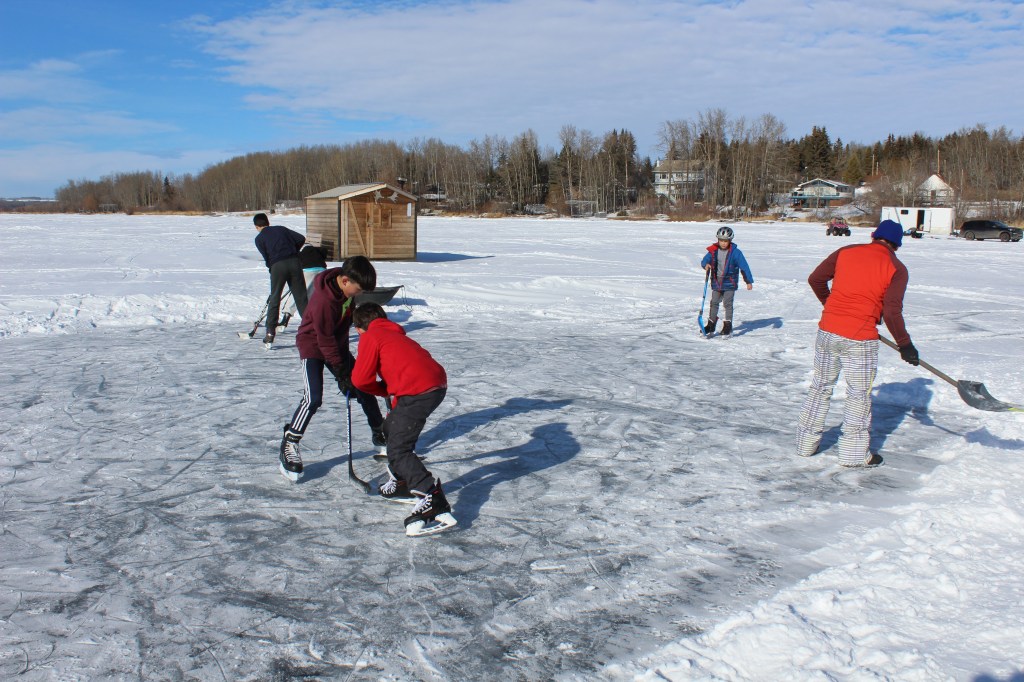 De totes maneres ja anàvem avisats, i en un tres i no res i amb una pala, construïm una pista d’hockey que fa les delícies dels nens que, avorrits d’esperar la inexistent pesca, han deixat les canyes a la seva sort i busquen altres activitats una mica més entretingudes.