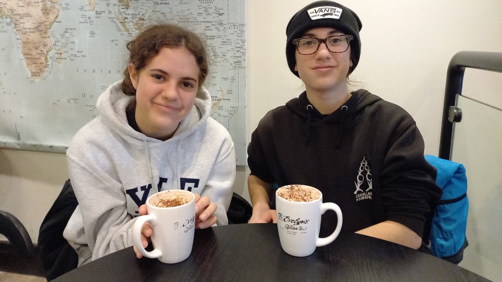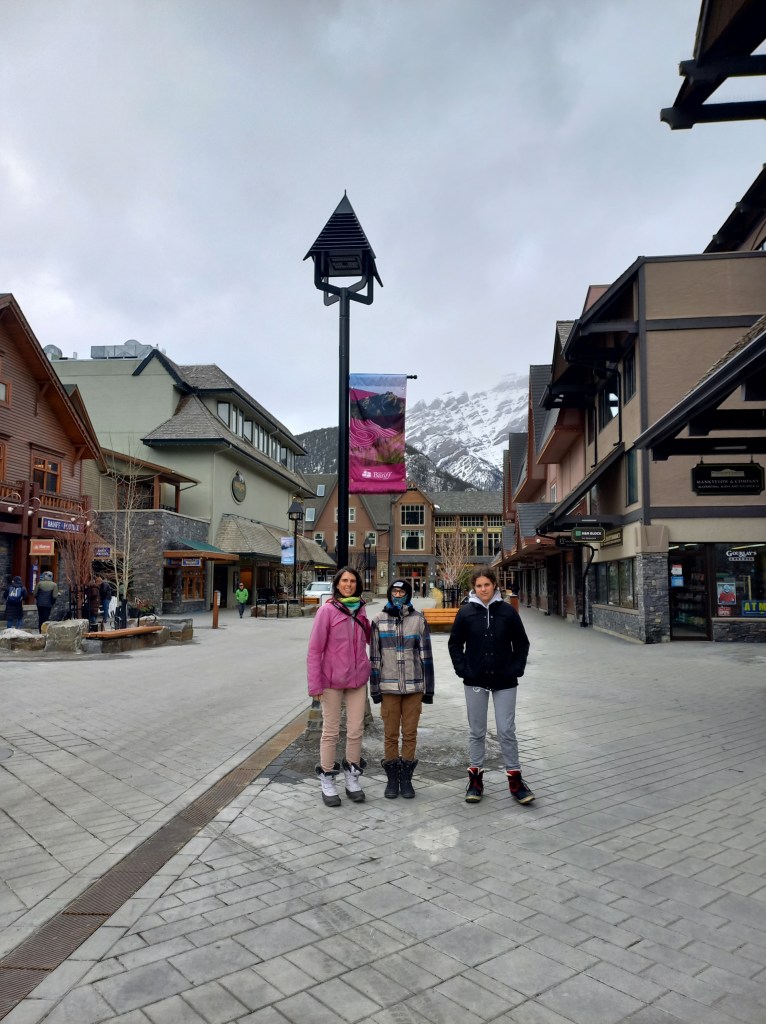 Després de la passejada parem a Banff amb dos objectius: visitar una de les ciutats més turístiques de les Rocalloses i recuperar els ànims de la membre de l’equip decebuda amb la planificació de la jornada (els Doritos amb salsa no han sigut suficients). Banff és la meca del turisme d’hivern a les Rocalloses (diria que de tot Canadà). Us podeu imaginar una Andorra La Vella a l’americana. No em malinterpreteu, té el seu rotllo, però no serà el lloc més bonic que hem visitat al Canadà. Un carrer principal ple de botigues per a esquiadors i restaurants amb gastronomia variada. En sortir del carrer principal passeges contemplant les segones residències, combinació d’Alps suïssos i mansions canadenques dels canadencs més ben acomodats. En passar per davant d’un establiment on serveixen xocolata calenta, donem per acabada la descoberta de Banff i optem per pujar els nivells de sucre al cos.