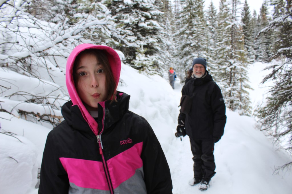 Darrer dia de l’escapada a la British Columbia. L’Àngels proposa fer una excursió a mig camí de Calgary, poc abans d’entrar a Alberta. És una caminada curta seguint el curs d’un rierol (Marble Canyon) tot creuant un munt de ponts de fusta. Té bona pinta. Amb l’excusa que hi anem tots, les adolescents amb tendència l’oposició frontal a les propostes de caminar per la muntanya, acaben cedint. Aquesta nit ha nevat força i el camí està poc trepitjat. En alguns trams ens enfonsem fins més amunt del genoll. L’Ona, la Núria, en Quim i la Vali gaudeixen llençant-se sobre la neu acumulada. Feia dies que no veiem tanta neu. L’última nevada va ser pels volts de Nadal i a Calgary ja fa dies que la neu ha desaparegut.