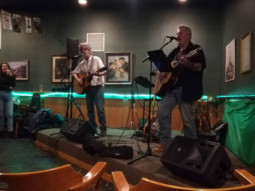 Ens reunim amb l’Àngels, l’Eugeni i els nens que han tingut la sort de trobar una taula lliure. Ja han iniciat la primera ronda de Guinness i ens fan un resum de l’espectacle en directe del local. Ens hem perdut les danses celtes, però estem de sort i podem gaudir del concert d’un cantant amateur (crec jo) que combina amb certa gràcia el country i la música celta.