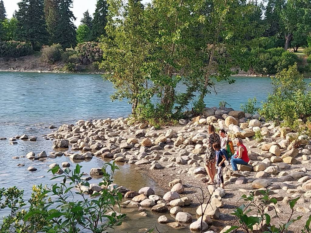 El Bow passa tranquil al costat del parc, la gespa té un verd resplendent i els arbres ens protegeixen d’un sol que porta picant fort tot el dia. A l’esdeveniment hem convidat a les famílies amb prole i, per fer-ho més pintoresc, a la nostra màgica veïna, la Sarah, i al polifacètic Iván, el mexicà escalador i urbanista que sempre té una història increïble sota la màniga pendent d’explicar. La combinació és explosiva, i ens permet passar una última tarda en família meravellosa.