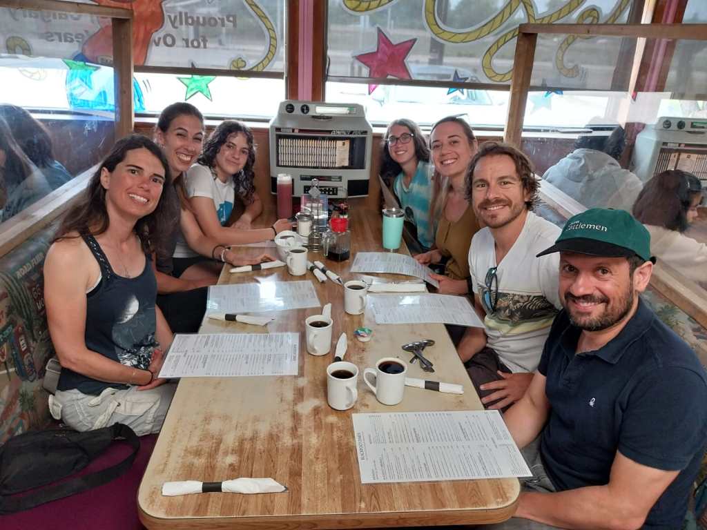 Arribem cap a les 10:30h i tal com recordàvem, ens rep una esplanada enorme que fa de pàrquing per camions, caravanes, cotxes i tot enginy rodant que pugui arribar fins aquí. Al mig de tot, empetitit per l’immens descampat, es pot entreveure el que sembla un establiment que hom diria que està tancat o en reformes. Com que ja venim advertits no ens fem enrere i aparquem al costat d’una camioneta a punt de desintegrar-se a causa de l’òxid que la consumeix i d’un camió amb tràiler enorme.