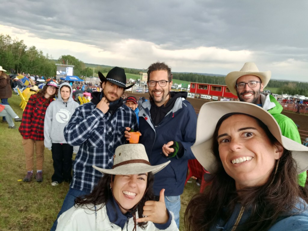 En Dani i jo ens retirem a la caravana a una hora ben prudencial en mode Ventafocs, just quan comencen a caure quatre gotes. La resta del grup encara té corda per estona. Diluvia tota la nit amb llamps i trons i galledes d’aigua sobre la zona d’acampada. La Nitsita aguanta la prova de foc (en aquest cas la prova d’aigua) i la tenda de l’Imanol en surt prou airosa. Dins la tenda del Kike hi plou tota la nit i els seus habitants acaben dormint encaixats com en un Tetris dins del cotxe. Com us podeu imaginar a l’esmorzar de l’endemà no hi falten les mil batalletes del ball de la nit anterior i del gran diluvi. Som dels primers a aixecar el campament. La resta de campistes no està en condicions per a conduir. De fet, la majora no estan en condicions d’adoptar una posició vertical. El Chinook es porta com el campió que és arrossegant a la Nitsita fora de la zona d’acampada, esquivant els remolcs que comencen a quedar-se encallats a la bassa de fang en què s’ha convertit la pista del càmping. Prou nets, dignes i contents enfilem el camí cap a Calgary. Ja podem posar la marca de “fet” a “Anar a veure un “rodeo”” de la “Llista de coses a fer al Canadà”.