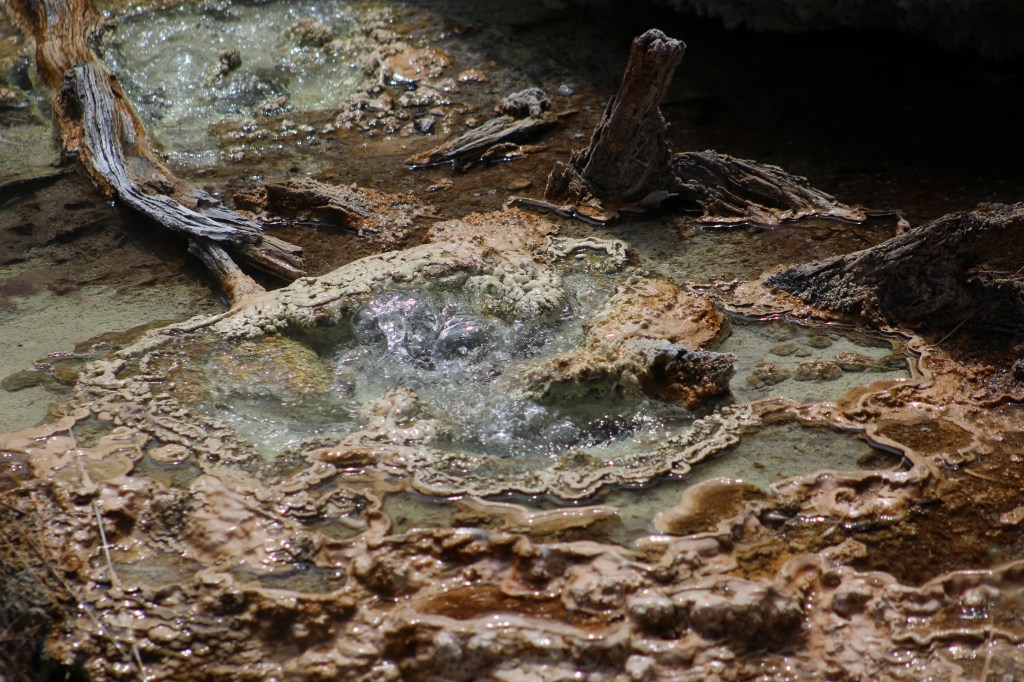 Abans d’arribar al cotxe, la ruta ens porta a una zona d’aigües sulfuroses, i tot i que les vam veure ahir, no podem deixar d’admirar aquest tipus de formacions i tot el que impliquen.