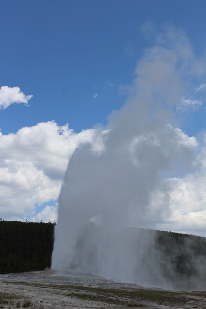 La primera parada és The Old Faithful (el Vell Confiable), és a dir el guèiser més famós del parc i tal com el seu nom indica, un dels més regular. Erupciona cada dues hores i amb absoluta fiabilitat. Per donar-li tota la pompa necessària i absorbir la gentada que arriba diàriament, la infraestructura muntada al seu voltant és colossal. Un gran amfiteatre rodeja el guèiser, però ja abans hem hagut de passar per la zona de rebuda als turistes, la més gran del parc. Per no parlar del que sembla un gran hotel a la nostra esquerra i les sales d’exposicions i d’actes que acaben d’arrodonir tot el complex.