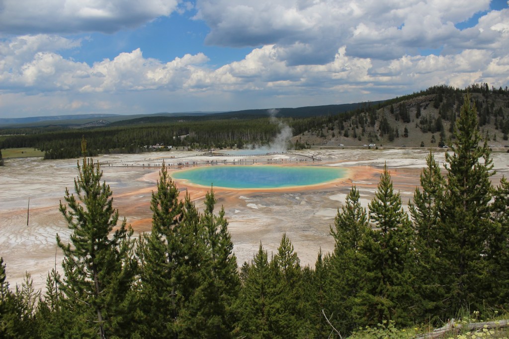 Després de repetir amb l’Old Faithful anem a l’altra primera espasa de Yellowstone, el Grand Prismatic Spring, que segur que heu vist milers de fotos. Molta gent, molta calor, però de nou ens quedem bocabadats i rendir-nos a l’evidència de la meravella que significa estar aquí.