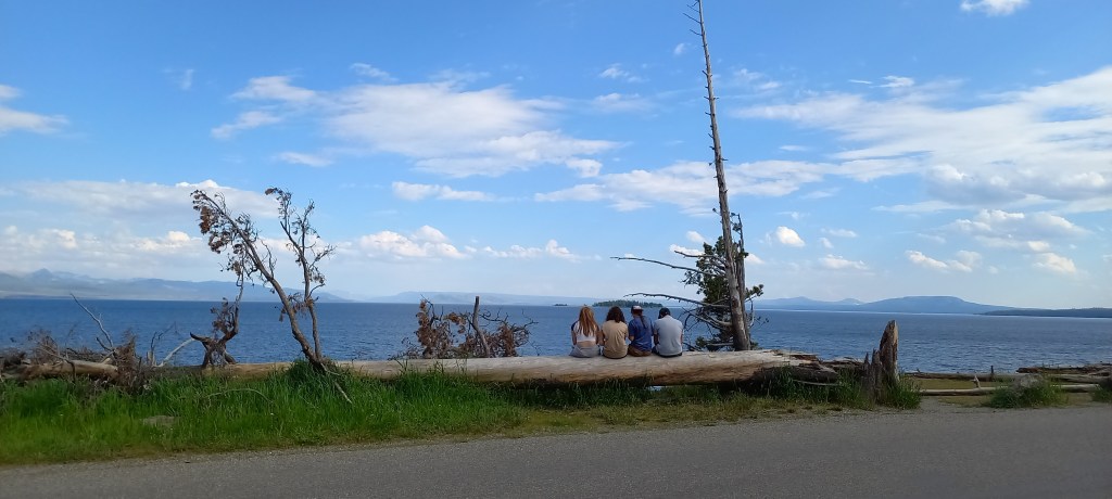 Quan arribem al pàrquing passem pel costat d’un llac que va perfecte per un dia calorós com aquest. L’aigua… bé si la mama ni hi ha volgut entrar, ja tots com està: freda. Els pares volen tornar al Norris per acabar el que no vam poder fer per culpa de la pluja. Però les “teenagers” protestem amb gana i no qualsevol gana, gana de gelat. Passem per Canyon Village i agafem un pot de gelat de vainilla per compartir, entra molt bé amb bones vistes al llac.