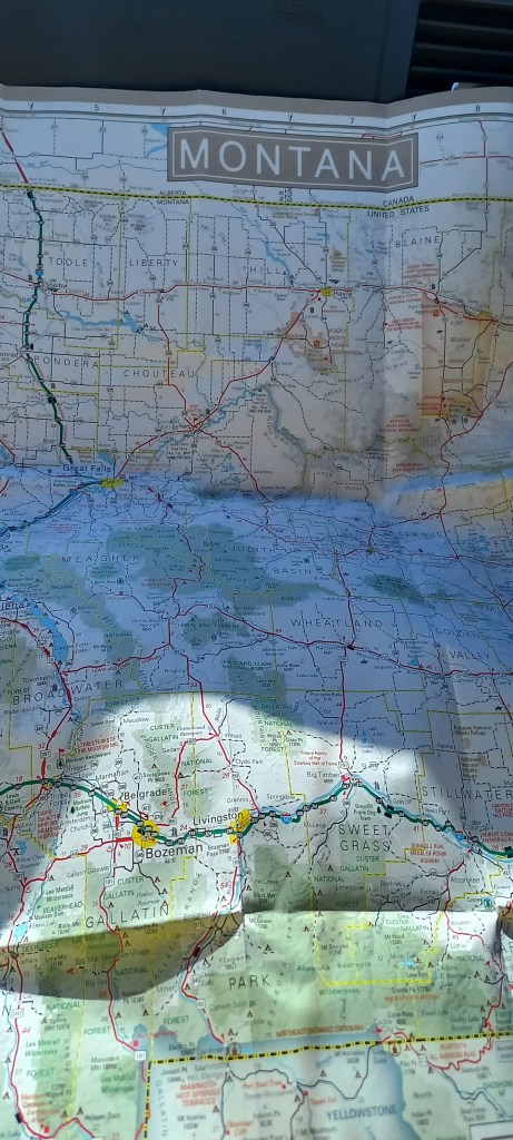 Emprenem el camí de retorn cap a Calgary, però l’aventura no s’acaba avui ni tampoc s’acaba aquí a Yellowstone. Volem aprofitar el viatge de tornada per visitar Montana. Va aparèixer a la meva llista de desitjos d’ençà que hi vàrem venir per casualitat/necessitat el novembre passat. El primer objectiu és fer nit a White Sulphur Springs. El motiu de la tria? És el punt més gros que es veu per la zona central de Montana en el mapa de carreteres. Tan senzill com això. Podeu estar sorpresos pel motiu de l’elecció, però si doneu un cop d’ull al mapa de Montana, podreu constatar que hi ha poques opcions més. L’altre motiu és que el nom em sembla, si més no, curiós! L’opció de decidir on passar la nit llençant un dard al mapa de Montana també m’havia passat pel cap, però he calculat que teníem el 90% de probabilitat d’haver de dormir enmig del no-res. Dit així pot semblar molt romàntic, però les comoditats d’un càmping també tenen el seu rotllo …