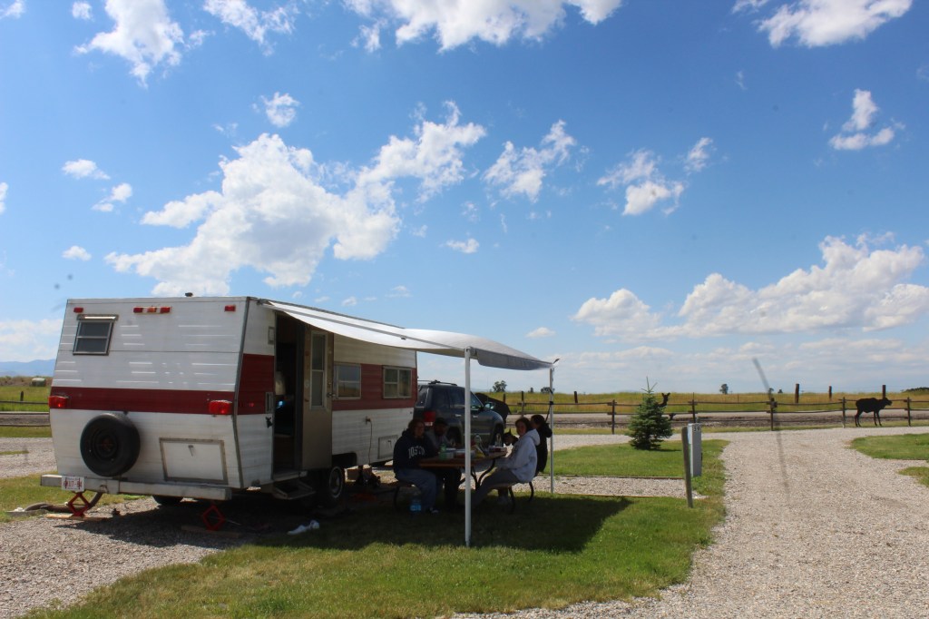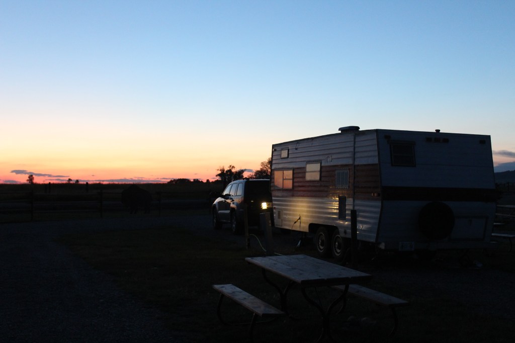 Amb l’excusa del sopar, ens aventurem al centre del poble. Allí tinc la viva imatge de Radiator Springs, el poble de la pel·lícula “Cars” de Pixar. És tal qual. Un carrer ample i recte amb la seva benzinera, un parell de restaurants, l’oficina de correus i alguna botiga de records. Els cotxes “vintage” li acaben de donar el toc. M’enamoro del poble a mesura que passegem pel carrer principal (no hi ha gaires carrers més). Sopem a hora local al Jesse Peppers Smoke Shack per recomanació de la Kathelyn, la recepcionista del càmping. A la tornada al càmping Montana ens regala una de les seves postes de sol espectaculars. Càmera en mà, l’Ona immortalitza tots els racons del càmping amb les últimes llums del dia. Demà, a contracor, deixem la Montana profunda.