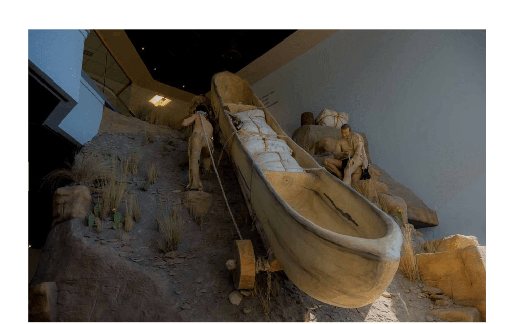 Al vestíbul del museu un diorama en format real ens dona la benvinguda. S’hi veu una canoa de fusta d’uns cinc metres de llarg arrossegada pendent amunt per un grup de sis homes descalços caminant sobre pedres i cactus. La imatge és més aviat xocant. Em recorda a les processons de Setmana Santa a certes ciutats d’Espanya. Ves quines coses! Ens passem més de dues hores visitant l’expedició, coneixent el periple dels exploradors Lewis i Clark i el seu equip. A principis del segle XIX, amb els Estats Units acabats d’independitzar i tot just ocupant una quarta part del que acabarà sent el país, els varen encomanar la missió d’explorar la zona central i l’oest del continent, trobar una ruta per accedir a aquell territori i establir-hi presència nord-americana. Van començar remuntant el riu Missouri i una de les grans proeses del viatge va ser remuntar a peu les cascades del centre de Montana, on ara es troba la ciutat de Great Falls. Van arrossegar les canoes riba amunt per tal de salvar el desnivell de 30 metres durant uns quants quilòmetres. L’escena es plasma en el diorama del vestíbul. Una altra gran gesta va ser arribar al Pacífic dos anys després.
