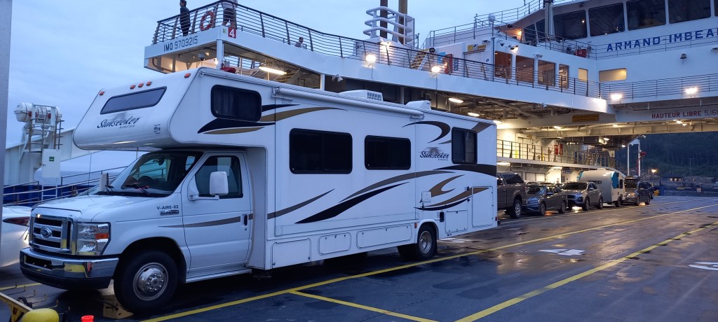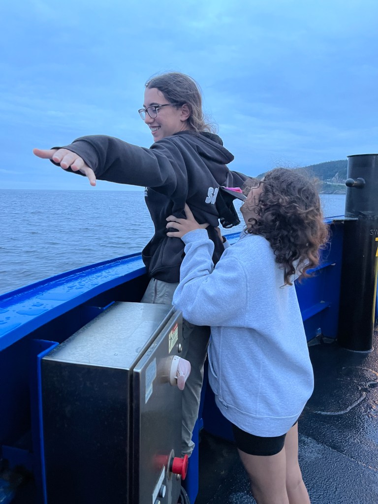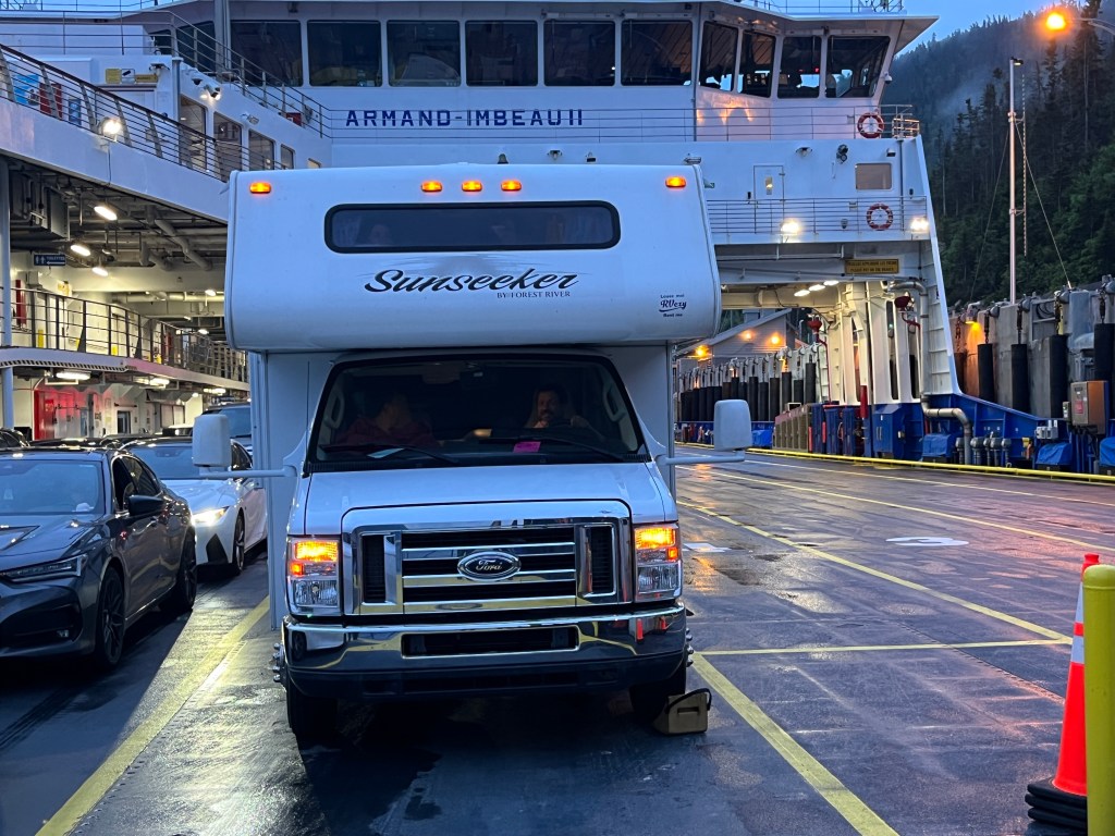 Els paisatges són espectaculars i completament diferents als d’Alberta. Es nota en tot moment que estem a prop de l’oceà, la humitat és alta i els turons boscosos es combinen amb la praderia durant tot el camí. La part més emocionant del viatge arriba al final. Aquesta vegada sí que tenim a la canalla excitada gràcies al ferri que ens ha de portar al càmping, i la veritat és que no és per menys!