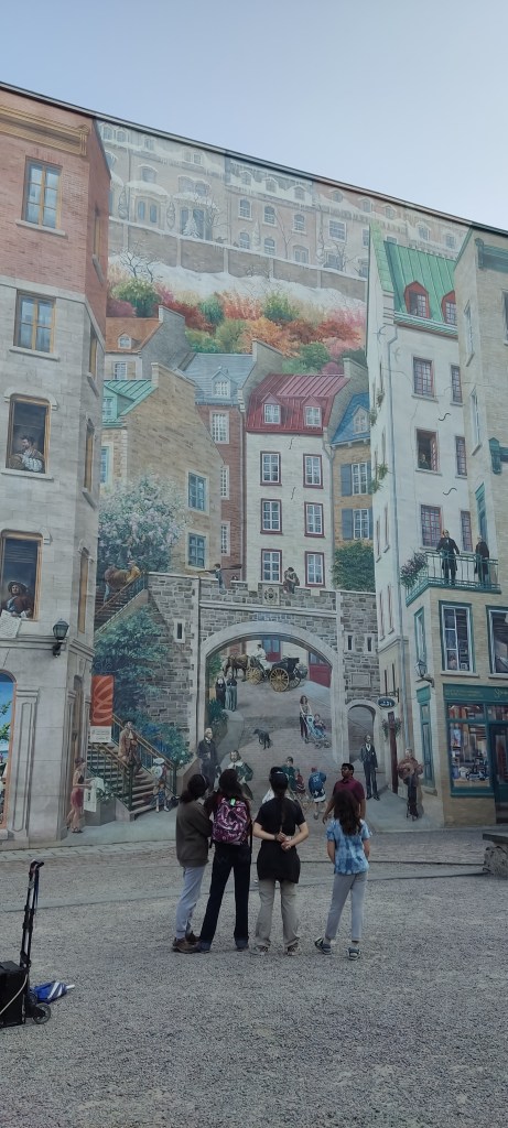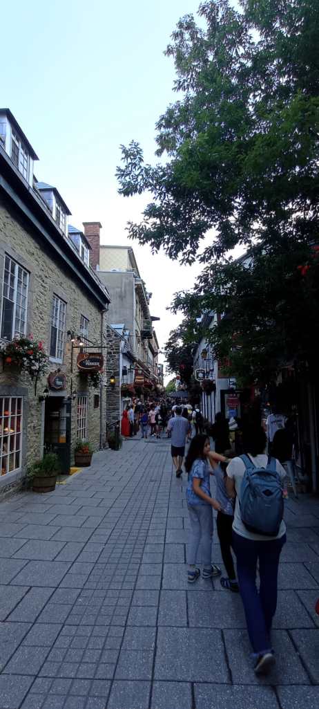 Per fi una ciutat on es pot passejar al Canadà! El Downtown de la capital quebequesa és el més semblant que us pugueu imaginar al centre d’una ciutat europea. Carrers estrets, empedrats, que pugen i baixen sense gaire ordre. Cases enganxades les unes a les altres amb petites botigues o restaurants a la planta baixa. Suposo que a tots us semblarà normal, però als Benítez ens sembla meravellós tornar a creuar-nos amb tanta gent al carrer, gent prenent la fresca o gaudint d’una beguda en una terrassa. Ens ha encantat Quebec City.
