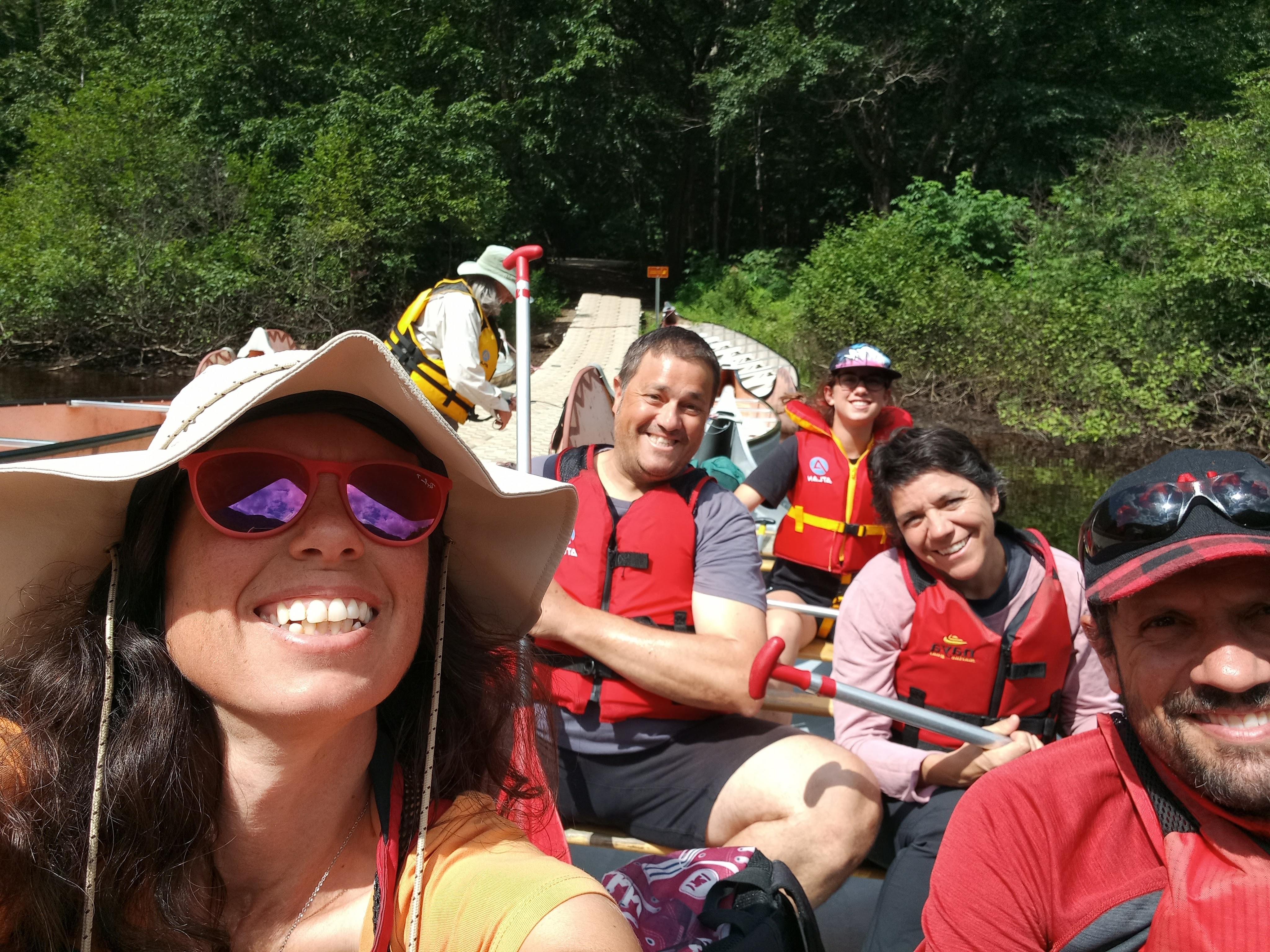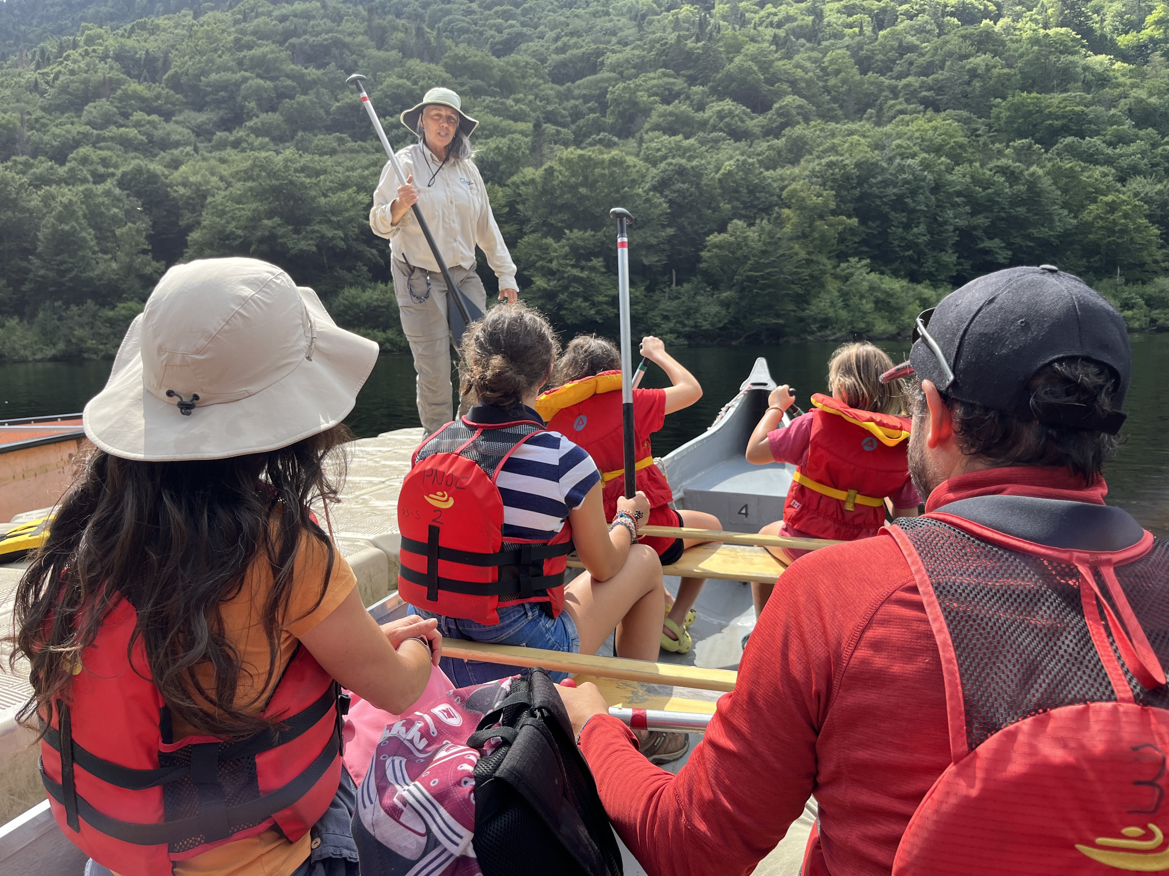 Arribem just, a temps… bé, de fet tard, però la veterana que ens acompanyarà amb la RABASKA, una canoa gran i ample amb la que ens deixem anar pel riu i escoltem les històries que ens explica la nostra guia.