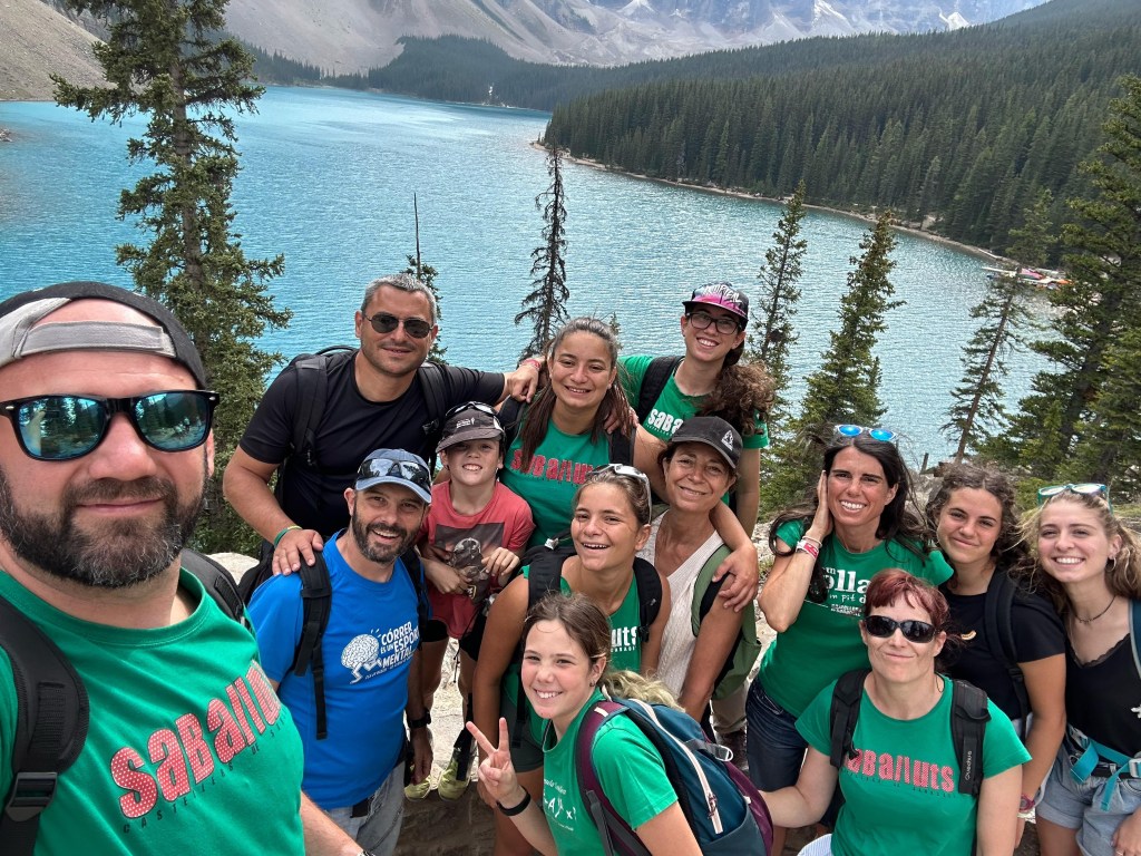 Avui toca fer el “guiri” en la màxima expressió. Anem a visitar Lake Louise i Moraine Lake amb tota la tropa (excepte en Dani, que es queda treballant a Calgary). La Sira rebufa exhesperada. Si bé és un lloc de pelegrinatge turístic i val molt la pena, amb aquesta serà la quarta visita a Lake Louise. Les altres visites van ser a la tardor, a l’hivern i a la primavera. Amb l’excusa que ens falta fer la visita de l’estiu, convencem a l’adolescent bufaire. O no, però Lake Louise i Moraine Lake és visita obligada (i promesa) i hi anem tots els efectius disponibles. Així que toca anar-hi. Arribem a Lake Louise amb el bus llançadora que et puja als dos llacs des del peu de la muntanya. Impossible arribar-hi en vehicle privat. El volum de visitants és tan gran que l’aparcament al costat del llac no dona l’abast. La primera panoràmica de Lake Louise no decep. El llac està impressionant, com sempre. No em canso de visitar-lo. Les cares dels efectius desplaçats al lloc mereixen l’esforç de repetir visita al llac. Ens mirem tots amb cara de complicitat i ja tenim clar que toca saludar el llac com sabem. Muntem un pilar de tres amb minipinya, foto de rigor, algun aplaudiment espontani d’algun guiri (la resta es queden petrificats amb la visió del pilar) i ja estem a punt per a començar l’excursió.