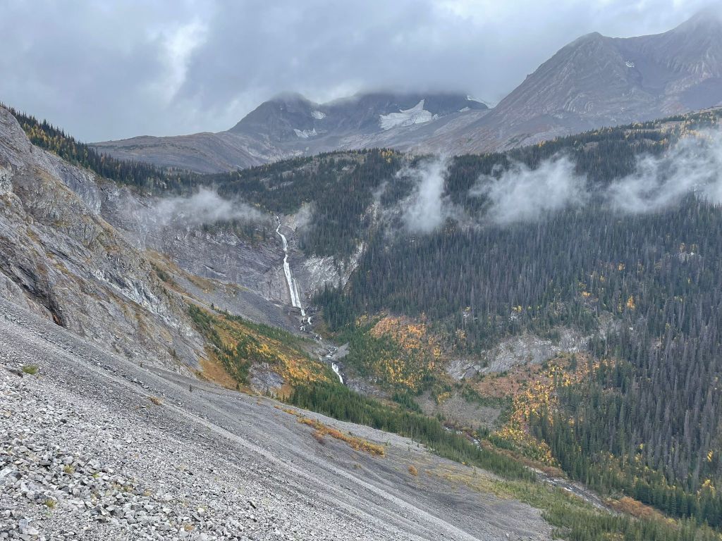 Vam sortir de Calgary cap a les 6:30 h del matí, i ens posàvem a caminar quasi dues hores més tard. La ruta resseguia, direcció est i sense cap desnivell, bona part de l’Upper Kananaskis Lake, per després girar cap al sud i començar a pujar de manera abrupta. En acabat recórrer els deu primer kilòmetres amb prou feines havíem fet 300 metres de desnivell, el que volia dir ens quedaven uns dos kilòmetres i mig per fer els altres 1000 metres restats. Això sí, el paisatge no deixava de ser espectacular a cada pas, fins i tot vam poder veure els desitjats larches, que començaven a perdre les fulles, ja totes grogues.