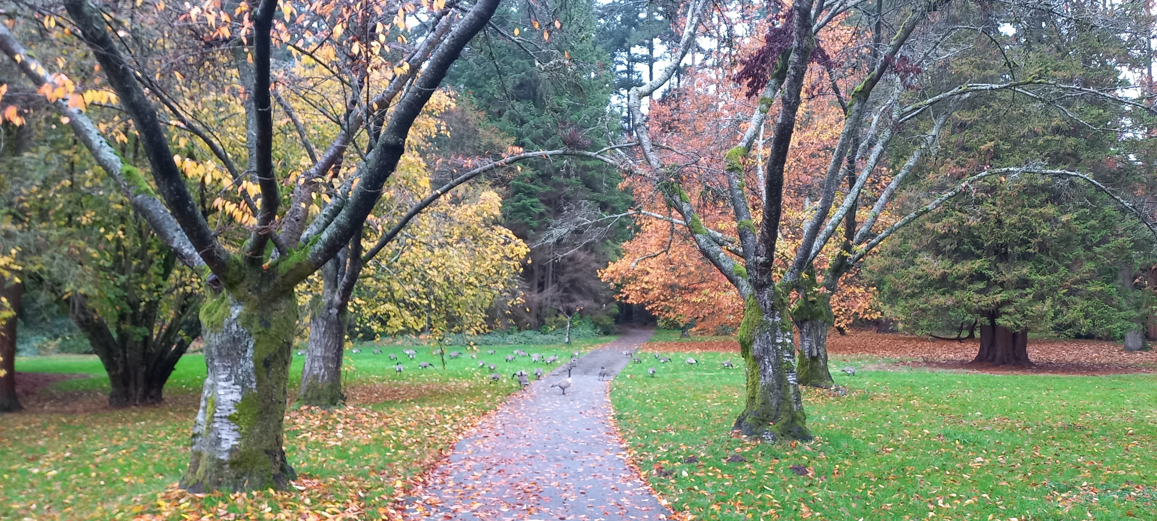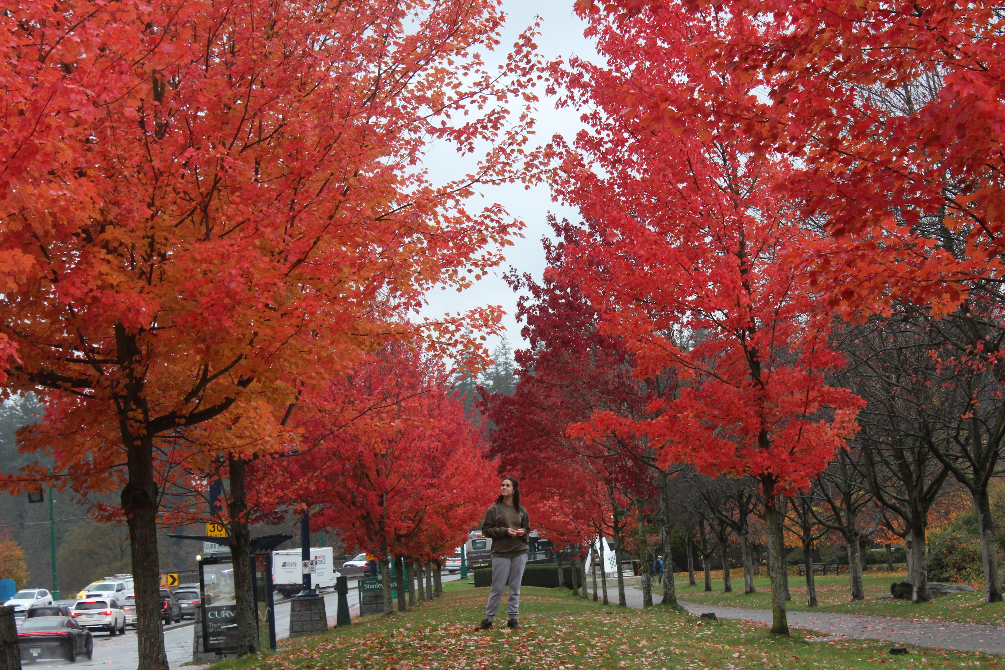 Després ens dirigim directes al mar, que ens atrau com un imant. Caminem pel passeig arran d’aigua d’un dels entrants de mar de la ciutat. Contemplem els vaixells amarrats al port i la flota d’hidroavions que et porten a qualsevol de les moltes illes que es troben entre el continent i l’illa de Vancouver. A l’altre cantó del passeig s’alcen els gratacels del centre de la ciutat en un sorprenent contrast. Arribem a Stanley Park, una de les moltes zones naturals dins la ciutat. Ens hi “perdem” una bona estona. Oques canadenques, ànecs i restes de castor en un parc ple de colors malgrat el dia gris i la pluja constant.