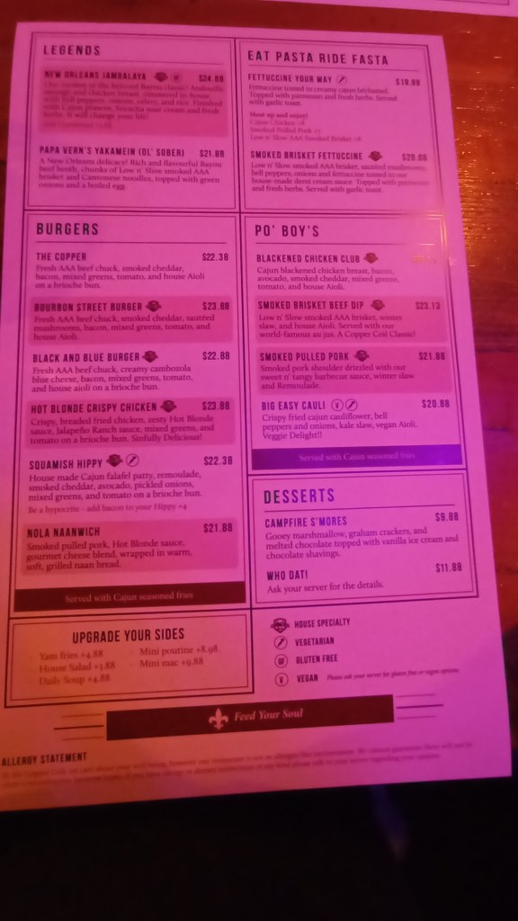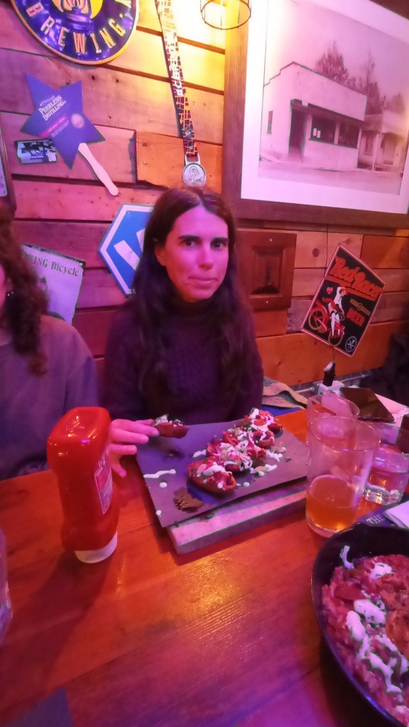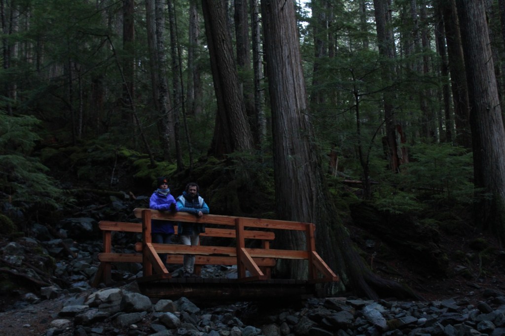 Al cotxe valorem, no ens queda molta llum, però encara és molt d’hora per tornar. Els Papes estan motivats i diuen de fer una excursió. La Sira està clapant així que ella es queda al cotxe mentre la resta de l’equip comença a caminar. M’hauria agradat acabar l’excursió, però el sol diu adeu-siau i ens deixa a les fosques, així que hem de tornar sense veure res, i sorprenentment no cau ningú pel camí. Per acabar el dia anem a Squamish a menjar una hamburguesa a un restaurant autèntic. La carta de sempre, amb moltes hamburgueses amb patates, però amb noms molt originals. Un bon final per un dia complet.