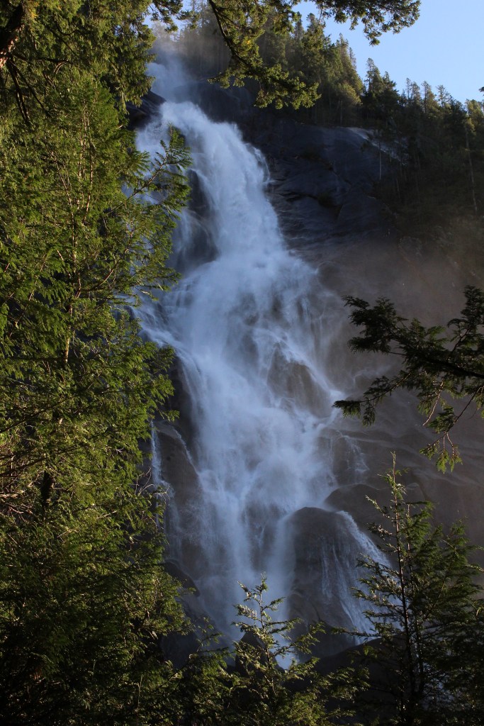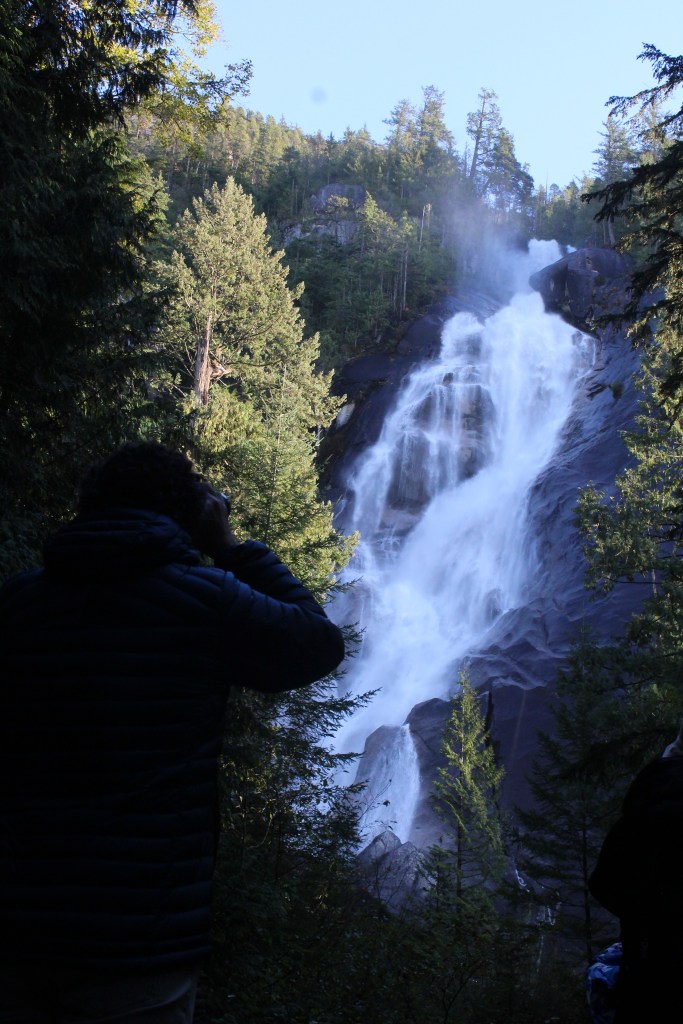 Encara queda llum de dia així que anem a la recerca de més activitats per fer. La Sira s’adorm en el moment que entrem al cotxe, sincerament no sé com pot dormir tant. Ara ens dirigim a Shannon Falls, la cascada més alta de British Columbia, 335 metres d’altura. Ens quedem una estona mirant la cascada, i quan ens aborrim tornem al cotxe. Ja comença a baixar el sol.
