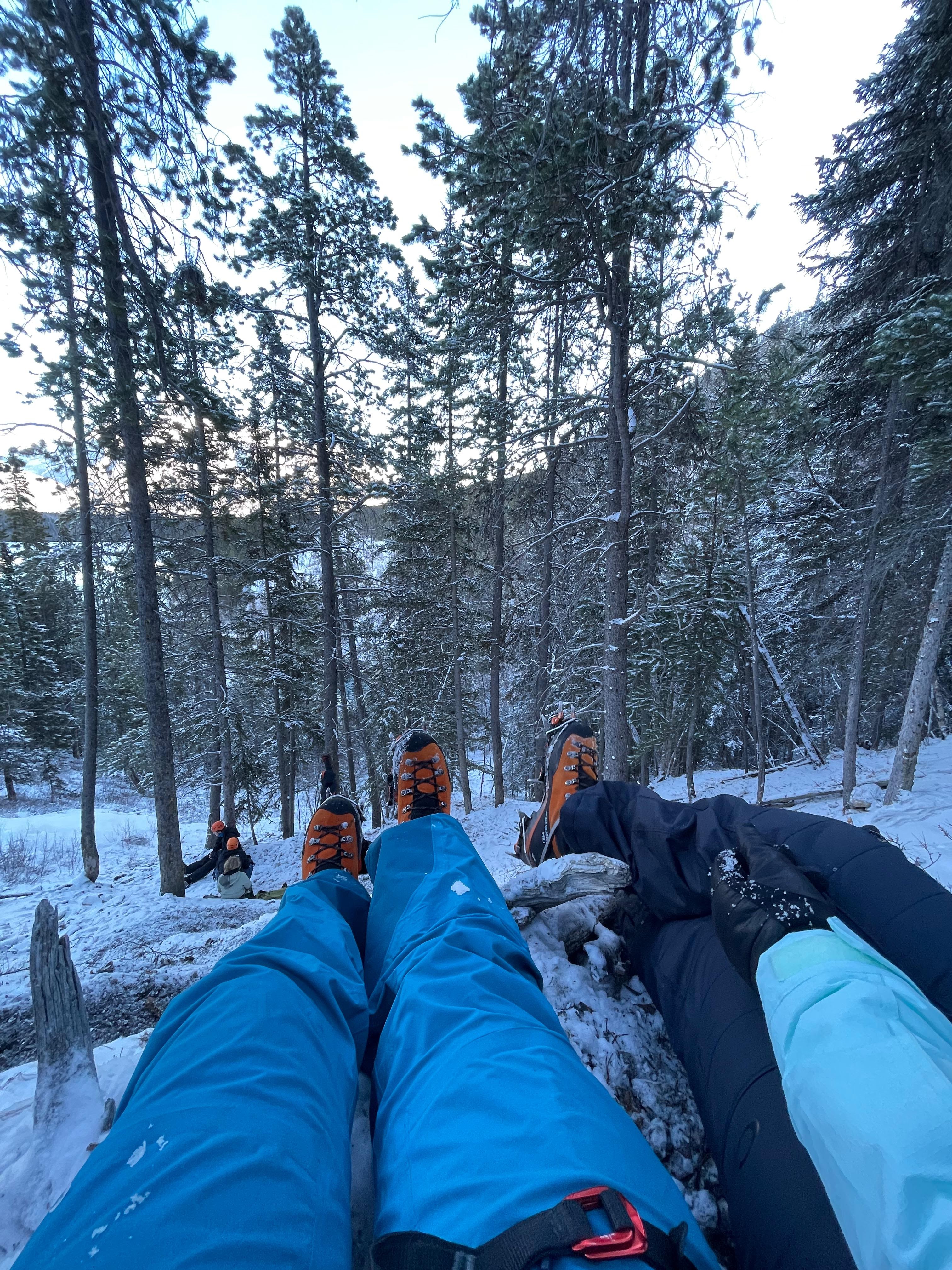 Tot i que anem de tirats i aprofitant el material dels altres, necessitem botes tècniques, grampons (de veritat, no spikes) i piolets d’escalada. Ho lloguem tot a la universitat de Calgary, i surt per un pico, però com us dic, aquest esport no és barat.