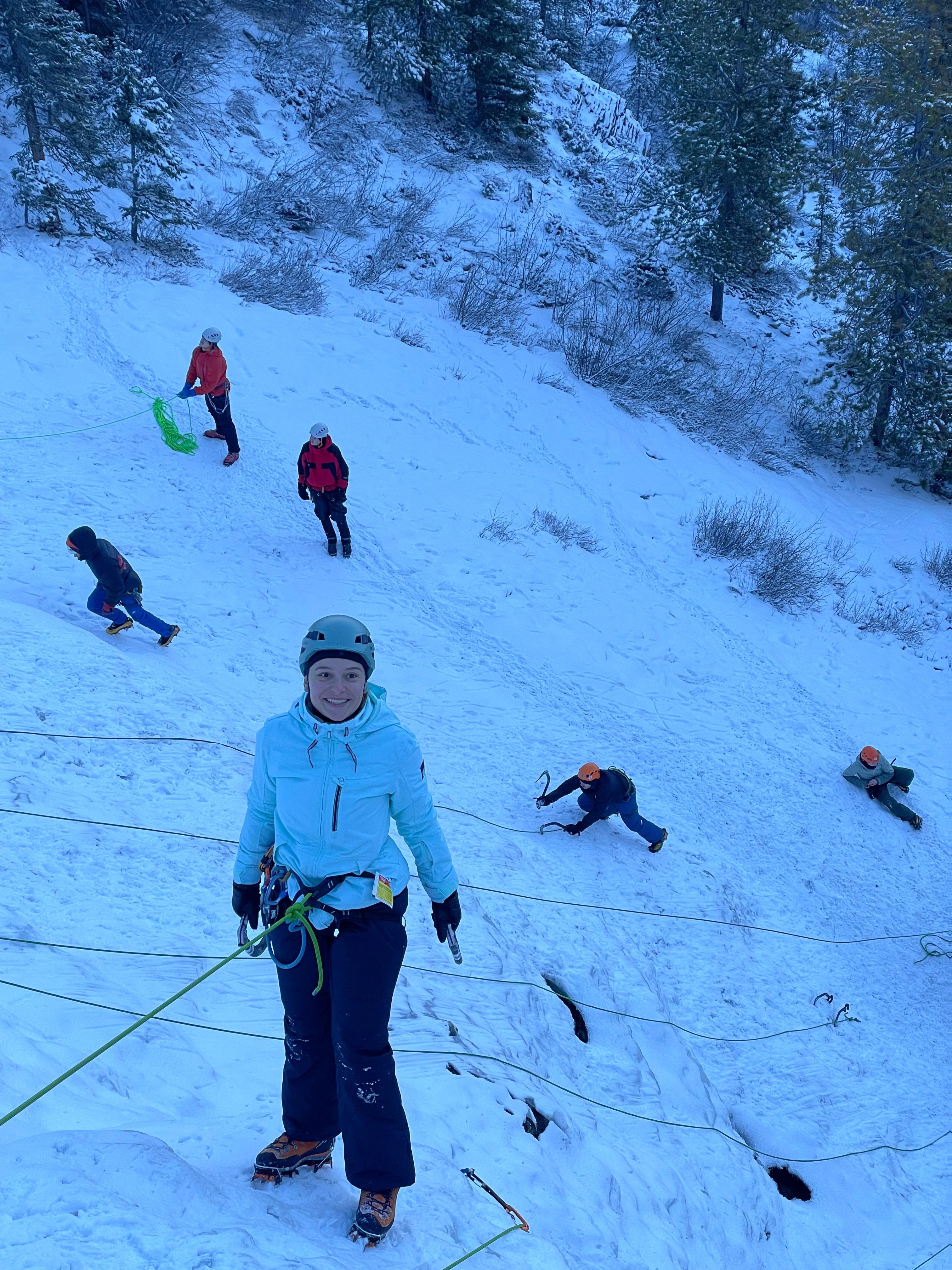 Aquí l’escalada en gel és un esport fàcil de practicar, hi ha gel per tot arreu a partir del novembre i fins i tot aquest hivern que ha estat especialment càlid, es pot practicar sense problemes. Només has de tenir molts diners o amics. Jo he optat per la segona, que la primera opció està difícil.