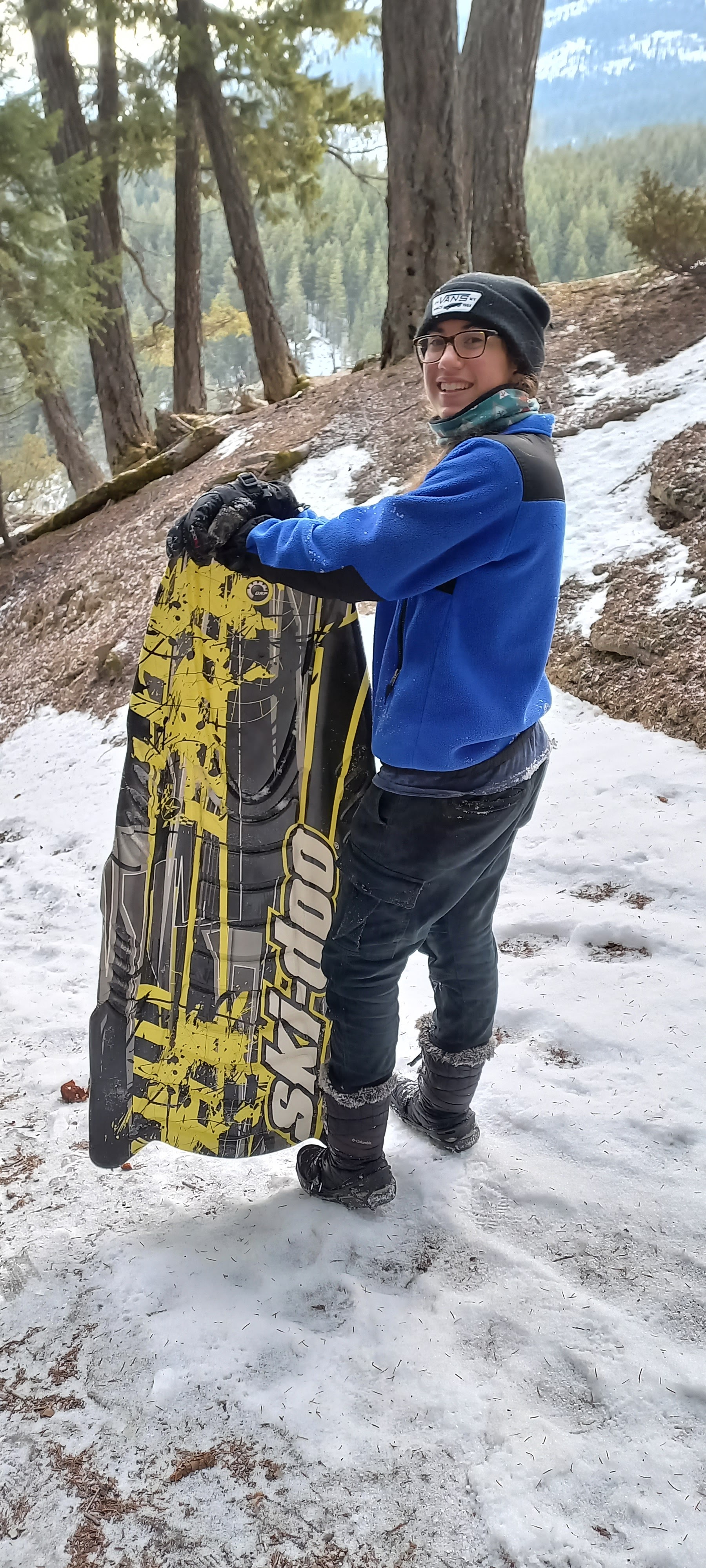 En el fons la ruta no arriba enlloc, però quan Alltrails ens diu que som al final del camí fem mitja volta i cap als cotxes. Aprofitem la poca neu que hi ha, per jugar-nos el físic tirant-nos en trineu, sobretot la Ona. Avui la Sira, tot i que s’ha apuntat, no fa tan bona cara. Arriba cansada i una mica farta de gel, relliscades i la vida de l’excursionista.
