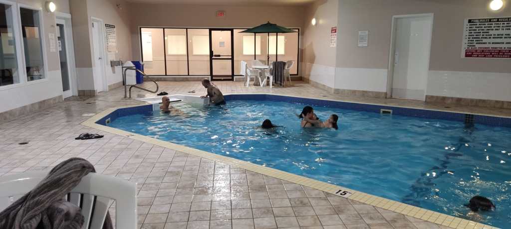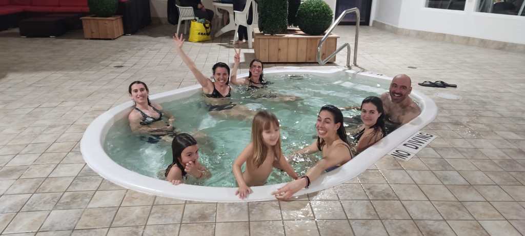 Per sort, tot s’arregla en arribar al càmping de Radium. A l’entrada ens retrobem, com per art de màgia amb l’altre equip i junts descobrim que això no és un càmping. ÉS UN RESORT! Cada plaça té la seva pròpia barbacoa de gas, hi ha una zona per descansar molt acollidora i sobretot… piscina climatitzada i jacuzzi!!! Ja us podeu imaginar que no vam fer gaire cosa més.