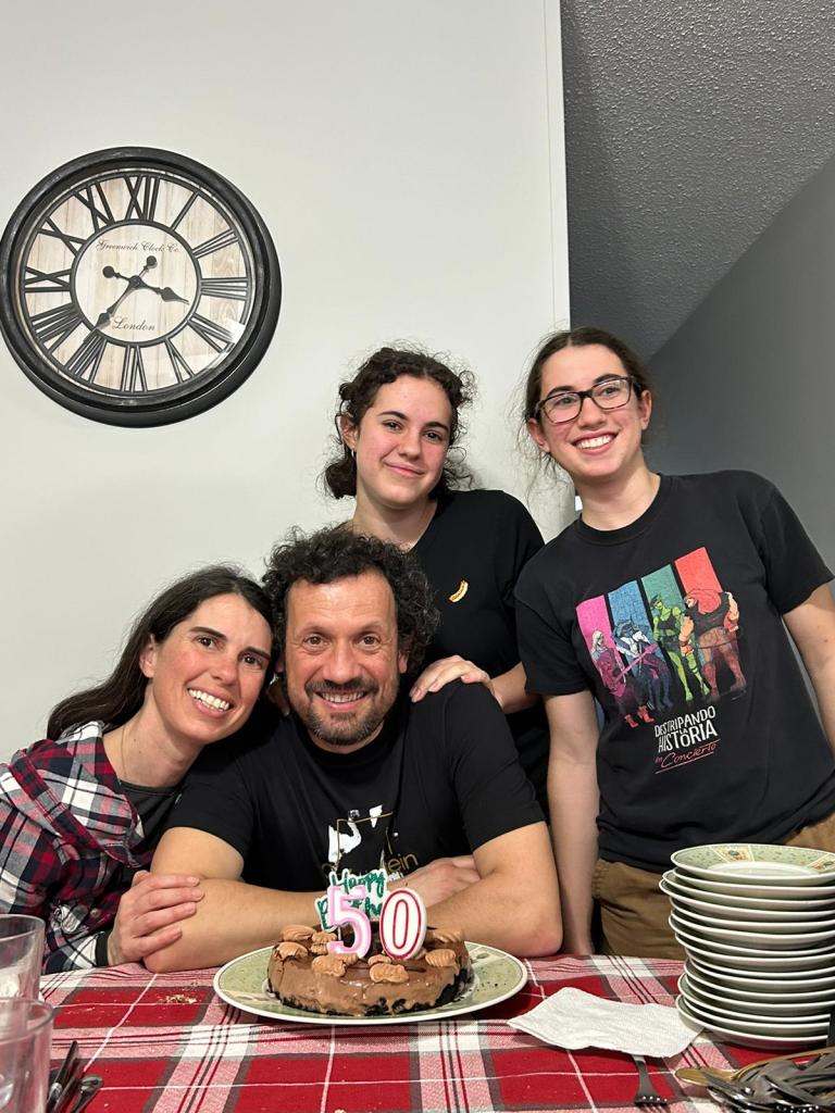 Dissabte va ser el dia fort: dinar a casa amb tothom qui vaig poder convidar per dimensió de la casa i proximitat. No van faltar la cosina llunyana Maite ni el Germà. L’Ivan amb el seu pare que estava de visita. També van venir la Nerea amb el Mikeldi i petit que encara està per sortir. Al Daniel el van deixar apuntar a última hora i també van ser-hi la Pilar i l’Antonio amb l’Emma, que sempre fan festa i val la pena tenir-los a prop.