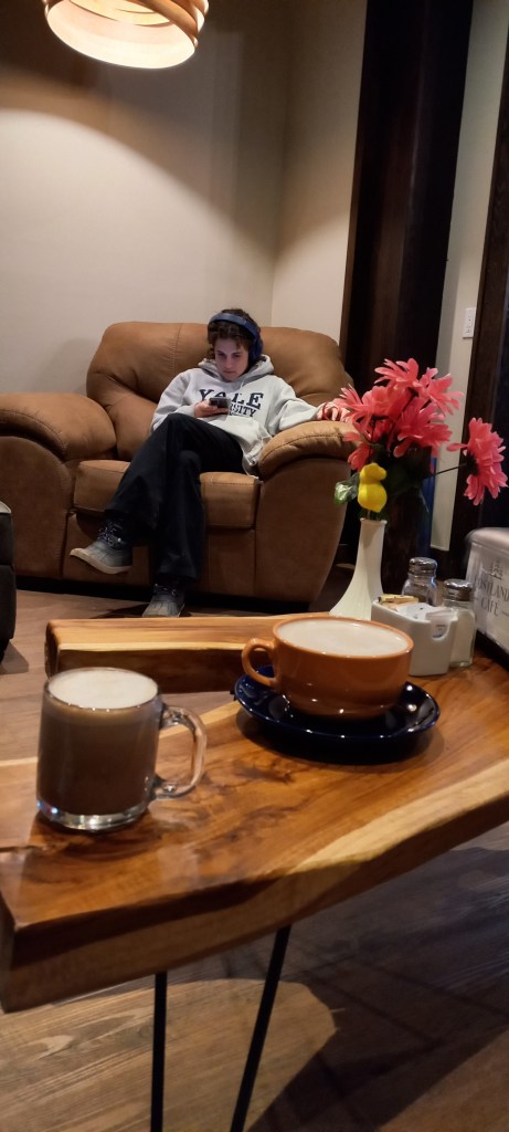 En Dani decideix caminar els 5 quilòmetres fins a Jasper. Les adolescents i jo ens hi desplacem en cotxe i l’esperem a una cafeteria cuqui del poble gaudint d’un merescut “hot chocolate”.