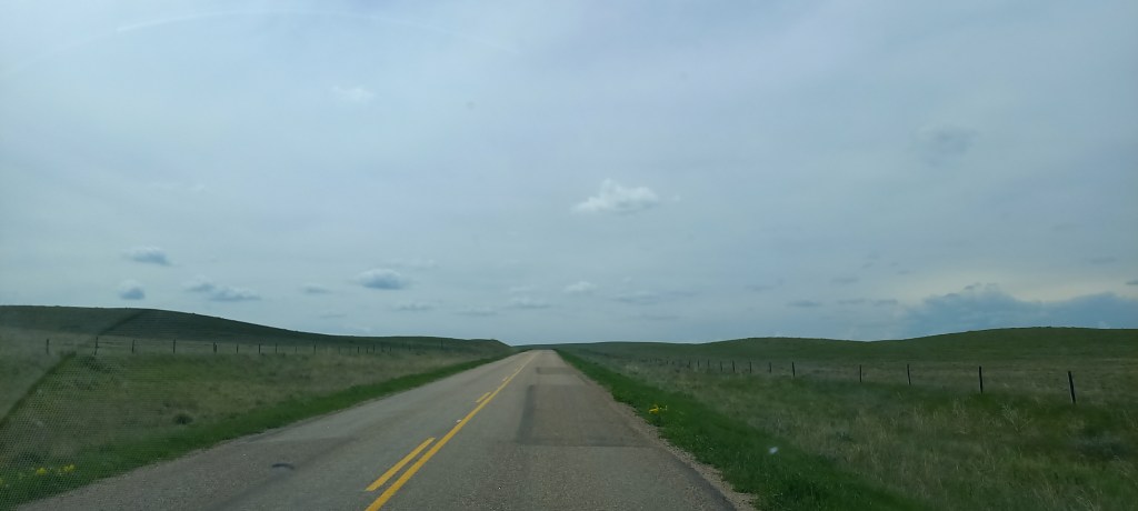 Avui tenim pensat visitar Fort Walsh, un centre històric que hi ha prop de Cypress Hills Provincial Park. També un altre ítem a la meva llista de “coses per fer a Saskatchewan”. Ahir a la nit a algú se li va ocórrer consultar la pàgina web i va descobrir que no obren fins dimarts vinent. La informació ens xoca. Poques coses que tenen per a visitar a la zona i se’ls acut iniciar la temporada de visita a Fort Walsh un cop passat el cap de setmana llarg més turístic de tot l’any al Canadà. Un cop exposada la informació al grup, decidim anar a visitar el fort igualment. La llista de “coses per fer a Saskatchewan” no és pas gaire llarga i tenim l’esperança de poder veure l’exterior de Fort Walsh. El trajecte fins al punt val la pena. El paisatge és purament agrícola. Quilòmetres i quilòmetres de camps de blat, amb un cel immens estampat d’enormes núvols. La fauna també es deixa veure: antílop nord-americà, rapinyaires, algun coiot i un porc-espí. Aquest últim en pèssimes condicions a causa d’un atropellament. Fort Walsh es troba en un lloc realment remot. Pel que tinc entès, els forts els construïen en algun punt estratègic. Alguns d’ells van acabar originant pobles i ciutats habitades actualment. No és el cas de Fort Walsh. Suposo que a finals del s. XIX el lloc devia tenir el seu què, però actualment no hi ha res en quilòmetres a la rodona. I és precisament aquest el seu encant. Deixem enrere els immensos camps de blat i la carretera remunta fins a un altiplà de terreny irregular amb petits turons suaus.