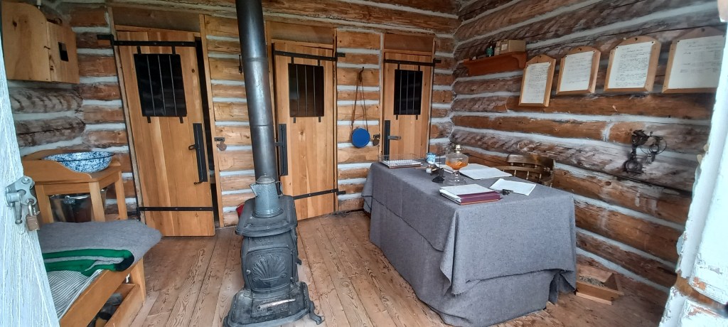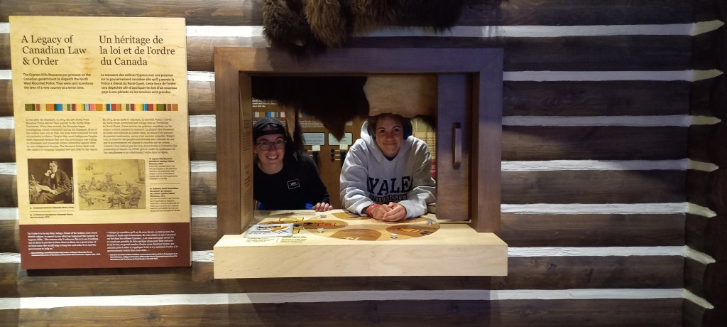 Sorpresa majúscula quan, arribats a l’entrada del centre d’interpretació, les portes automàtiques s’obren de bat a bat en detectar-nos. Veiem el vestíbul de l’edifici, amb tots els llums oberts i dues persones vestides de rànger somrient-nos a l’altre cantó del taulell de recepció. Ens quedem parats. El lloc és obert, malgrat la informació de la seva pròpia pàgina web! Segons sembla, la informació a la pàgina web oficial no és correcta i que no hi ha manera de modificar-la, així que, som dels pocs visitants que esperen tenir avui. No és precisament un lloc on et deixes caure per casualitat. Després de veure un documental de vint minuts, passejar-nos per l’exposició i gaudir de la visita al fort on el guia ens n’ha explicat tots els ets i uts en quasi dues hores de xerrera, hem entès per què se’ls va ocórrer construir el fort aquí. El cas és que el lloc, cap allà a finals del s. XIX era prou concorregut. Era zona de pas per a diverses poblacions de natius i alguns Métis. Està molt a prop de la frontera amb Montana (EUA) i el contraban de whisky començava a donar problemes. Havia arribat el moment de pacificar la zona i van muntar el destacament. Fort Walsh i tota la resta de forts que es van construir en aquella època tenien múltiples funcions: zona de seguretat, lloc d’intercanvi de mercaderies, correu i imposició de la llei del Canadà (el país acabat d’estrenar). Amb l’erradicació del contraban de whisky, el trasllat forçós dels grups dels natius a les reserves i el fet que Fort Walsh estava molt lluny del ferrocarril (passa per Maple Creek), el fort va acabar sent desmantellat cinc anys després de la seva construcció. Com a fet interessant (entre d’altres), a Fort Walsh va ser on el guerrer Tatanka Iyotake (Bou assegut) líder dels Lakota es va negar a acceptar cap pacte amb la Policia Muntada del Canadà. Al seu retorn als EUA, Bou assegut i la seva comunitat va acabar rendint-se a l’exèrcit dels EUA pocs anys més tard.