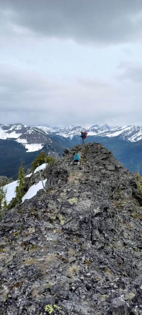 La segona pantalla, sembla més assequible, crestejar per una lloma no és gaire difícil… fins que la lloma desapareix i deixa pas a una escarpada paret que superem mig grimpant, mig caminant.