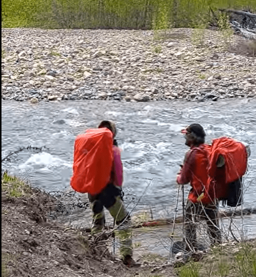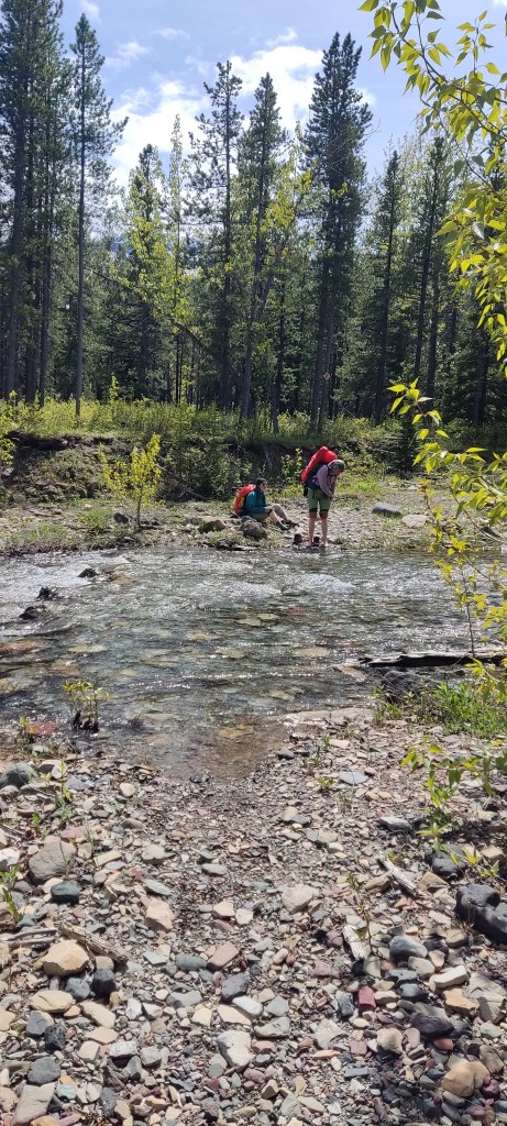 Ja vaig completament xop, però com a mínim la motxilla s’ha salvat. Faig un segon intent per una zona on el corrent sembla més suau i, no sense dificultat, aconsegueixo passar. L’aigua està gelada, però no hi ha temps per perdre. Deixo la motxilla i torno a creuar. Quan arribo la Ona ja està en calcetes i top, disposada a passar. I així, a poc a poc, amb més o menys sort passem tots a l’altra riba. Estem completament mullats i entumits, però tant la Laia com la Ona tenen la roba eixuta a dins les motxilles que s’han salvat. Així que poc després tot ha quedat en un bon ensurt, o broma pesada.
