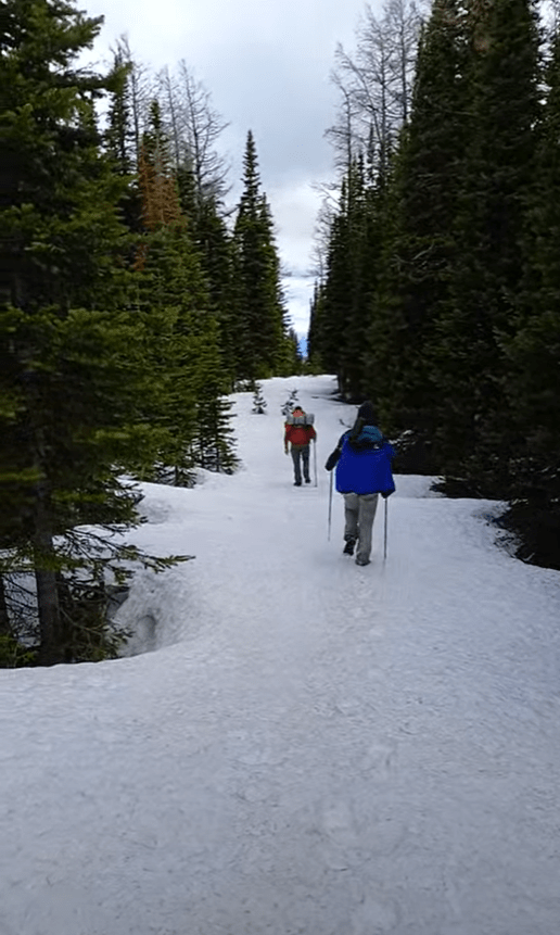 Portem ja mig camí i comencem a estranyar-nos de no trobar el Daniel. De totes maneres, sabem, gràcies al telèfon per satèl·lit (no tenim cobertura normal d’ençà que vam començar a caminar divendres), que està a lloc. El camí cada cop és més fàcil i clar. La neu ja només és esporàdica i els ànims estan a dalt de tot. Xerrem animadament i quan ja no ens queden més que uns pocs kilòmetres per arribar seguim sense notícies del Daniel. El que sí que ens trobem és un grup de cinc excursionistes que pugen a passar uns dies al llac, o com a mínim això ens diuen un cop ens hem tret les sabates, mitjons i arremangat els pantalons per travessar un riu que creua el camí. Poc més de cinc metres de llarg i l’aigua fins als bessons, res important. No gaire diferent és el següent riu que passem, aquesta vegada ja pensant en els cops que ens tocarà treure roba. Tot i que no poden ser gaires, ja que amb prou feines ens queda un kilòmetre.
