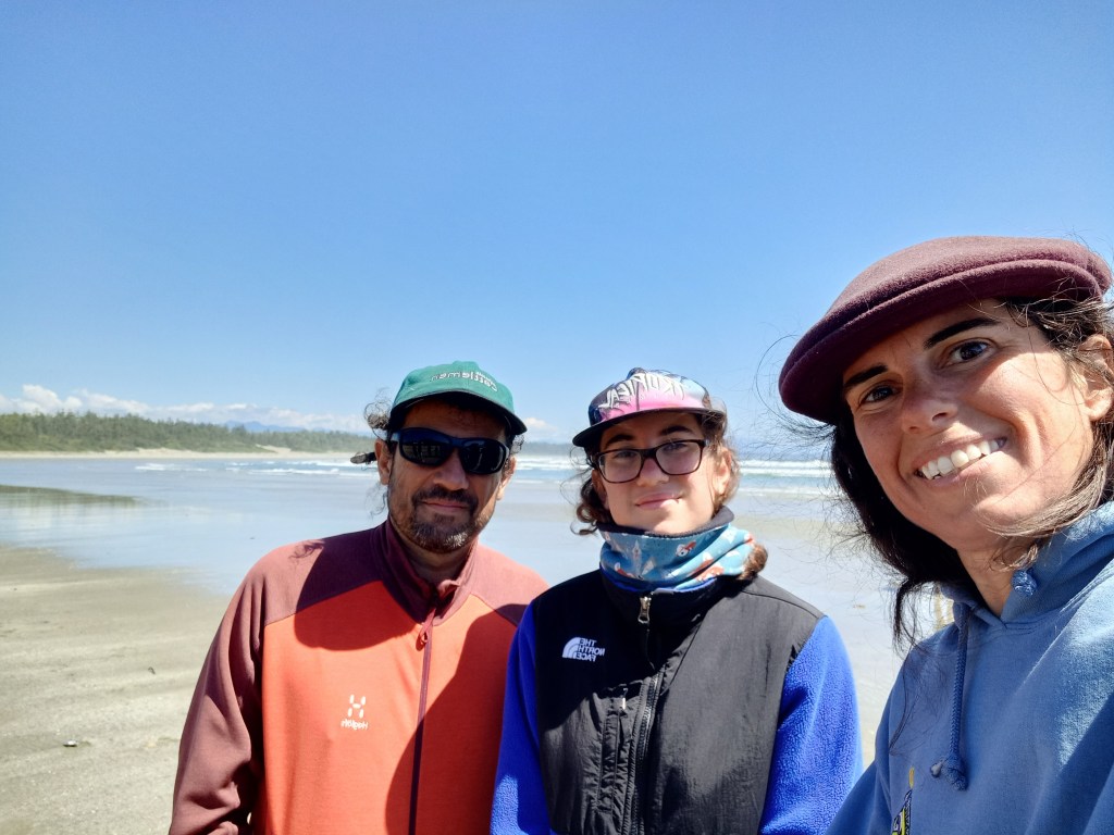 Després de la xerrada, la rànger ens convida a una passejada per la platja acompanyats d’un rànger que ens explica els ets i uts dels mil-i-un animalons que viuen entre marees. Òbviament, l’Ona i jo ens hi apuntem quasi sense ni preguntar. En Dani ens acompanya, quin remei! El rànger i una dotzena de turistes motivats ens passegem més d’una hora per la Long Beach en marea baixa, descobrint-ne meravelles. Meduses, isòpodes, amfípodes, crancs, petxines …, sembla un supermercat d’història natural. Marxem a contracor, amb un munt d’informació sortint-nos per les orelles. Hem de continuar fent ruta. Aquesta nit dormim a Quadra Island, a la costa est de Vancouver Island.