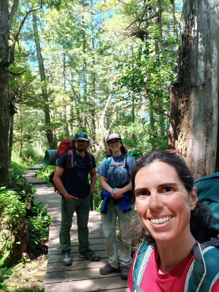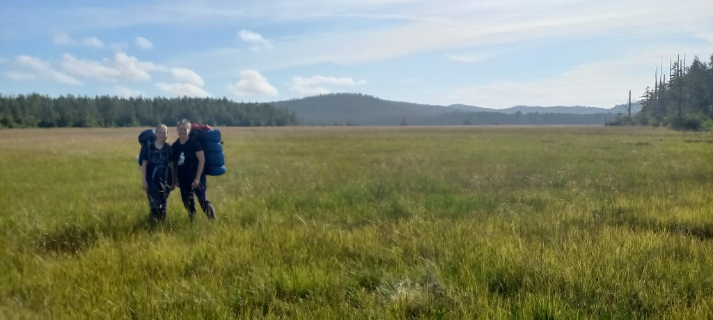 Aprofitant el cap de setmana marxem a fer el primer backpacking a l’illa. També s’apunten la Myra i l’Ocean. Tothom està molt emocionat, tot i que la Myra ha estat moltes vegades per la zona, hi ha alguna cosa que la té més excitada del que semblaria normal. Nosaltres, ens deixem portar per la seva experiència com a natives i el consell és fer una primera tirada llarga, d’uns 21 km sense gairebé desnivell per poder dormir a la platja de Nels Bight. Ens sembla una mica agosarat, sobretot per l’Ocean, que mai ha fet una ruta tan llarga, però la seva mare està convençuda, així que no posem gaires problemes.