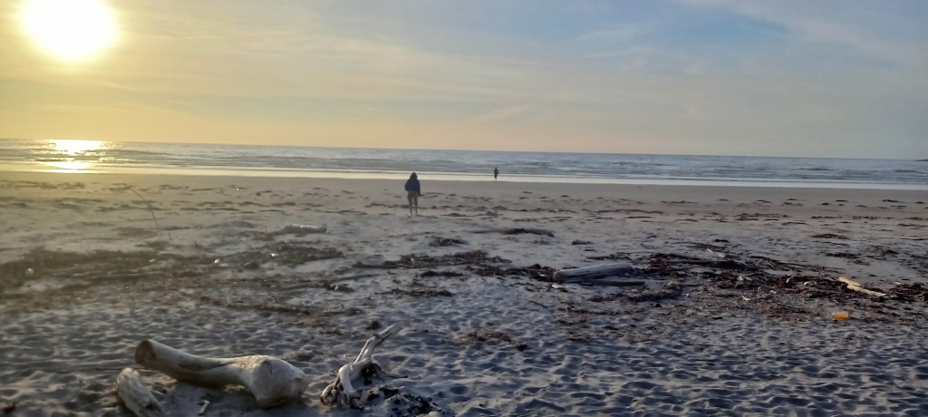 No es tracta d’un càmping a l’ús. És una enorme platja on cadascú planta la tenda allà on millor li convé, prou lluny de la marea, això sí. Acampada lliure. Mentre plantem el campament, descobrim on està l’aigua “potable” i preparem el sopar, va caient la tarda i una impressionant posta de sol ens conclou el primer dia de ruta que ha estat fins i tot millor del que esperàvem tot i l’ensurt final.