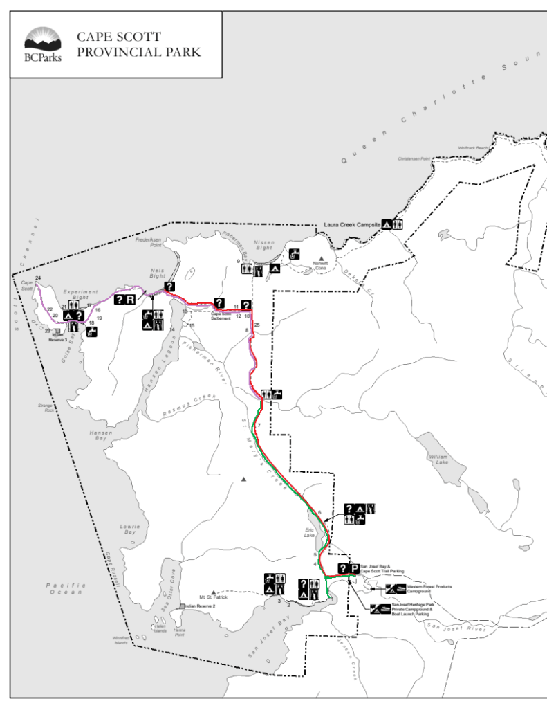 - Primer dia en vermell. de Cape Scott Trail Parking – Nels Bight (18km)
