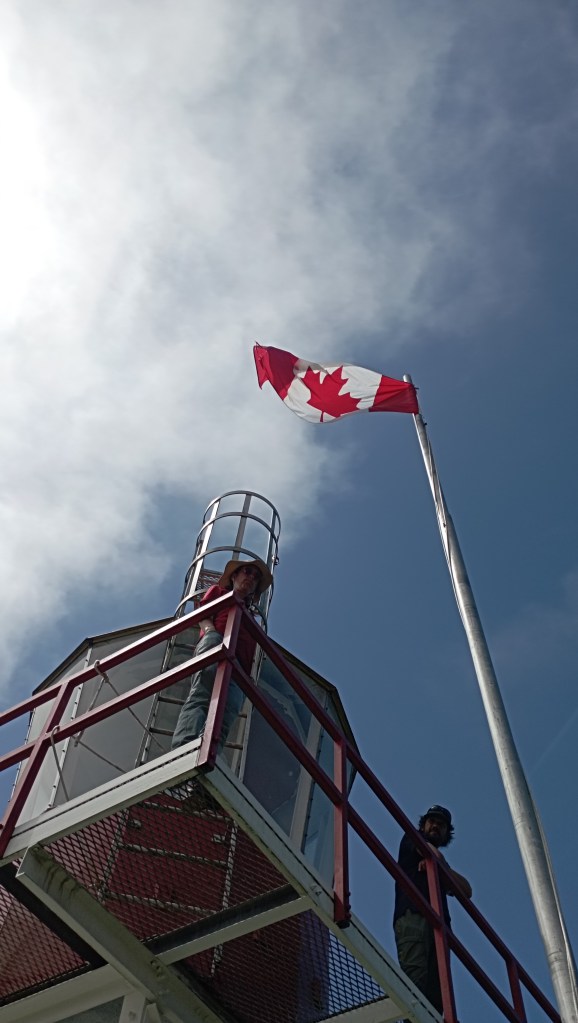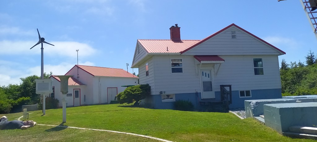 L’indret és, com sempre, de pel·lícula. Després de passar per camins embarrats i pantanosos, boscos immensos i platges desèrtiques i paradisíaques, arribem a un conjunt d’edificis blancs amb sostres vermells, perfectament cuidats i pintats, amb una gespa tallada a ran i tot cuidat fins a l’últim detall. És tot tan meticulosament net i polit que posa una mica els pèls de punta. Cap Scott, abans que far, va ser una antiga base militar de la Segona Guerra Mundial que ara està regentat per dos nois, contractats per l’estat, que es passen aquí els 365 dies de l’any. L’única sortida més enllà de la que hem fet nosaltres a peu és un mar que ha escombrat la vida molt dels colons que van intentar arribar fins aquí. Així que temps per dedicar-se a la jardineria i el bricolatge, tenen de sobres.