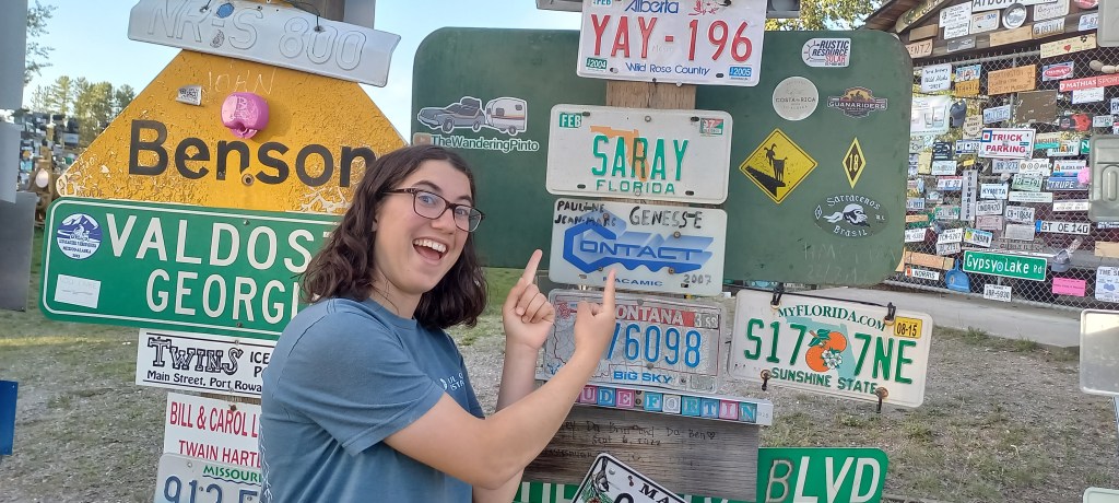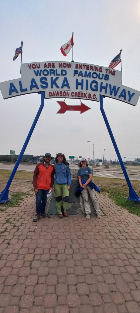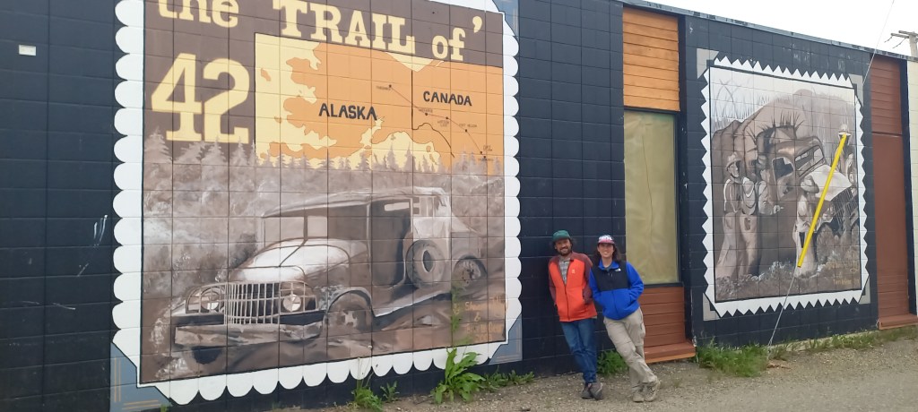 La primera parada és a Watson Lake, al sud del Yukon. És una parada quasi obligada a tots els que viatgem per l’Alaska Highway. Un dels motius és perquè té un centre d’informació de turistes. L’altre motiu és que hi ha pocs llocs en aquesta carretera on puguis comprar menjar i omplir el dipòsit del cotxe. Al punt d’informació veiem un documental sobre l’Alaska Highway. La va construir l’exèrcit dels Estats Units per a connectar per via terrestre Alaska amb la resta dels Estats Units. Fa 2.450 quilòmetres des de Dawson Creek (British Columbia) fins a Delta Junction (Alaska). La construcció va ser una obra faraònica en un temps rècord. Al govern dels Estats Units li va entrar les presses a l’inici de la Segona Guerra Mundial. Temien que el Japó els envaís el país entrant per Alaska. Per aquest motiu volien tenir fàcil accés a Alaska per via terrestre des de la resta dels Estats Units. La invasió no va arribar mai, però la carretera va servir per a donar accés a una zona molt remota del continent. Avui en dia el Yukon continua essent un lloc remot i molts aventurers decideixen recorre l’Alaska Highway pels paisatges espectaculars que travessa. D’ençà que hem sortit de Whitehorse no hem parat de veure caravanes, autocaravanes i tota mena de cases rodant. És una ruta molt concorreguda.Al costat del centre d’informació de visitants de Watson Lake hi ha el Signal Post Forest. L’any 1942 un dels soldats que estava treballant en la construcció de la carretera, va clavar un rètol en un pal al costat de l’Alaska Highway. El cartell era de “Danville, Illinois” (el seu poble natal). Altres soldats, també enyorats de casa seva, van imitar el gest. Un cop acabada la carretera, els viatgers de l’Alaska Highway que paren a Watson Lake han continuat amb la “tradició”. L’any 2023 es van comptabilitzar 100.000 cartells d’arreu. També hi ha matrícules de vehicles, sabates i alguna gorra. Menció especial a la quantitat de persones que fan l’Alaska Highway en moto des de Xile, Argentina i Mèxic. És com un lloc de pelegrinatge.
