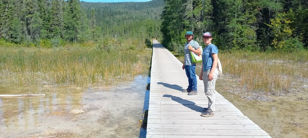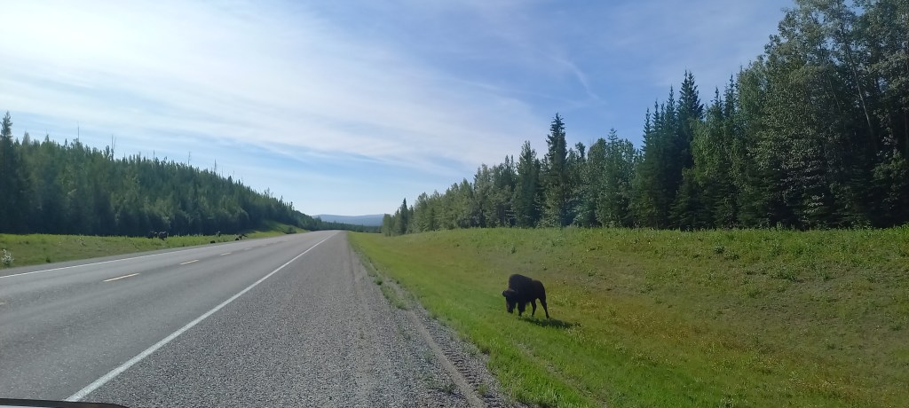 Avui ens creua un “black bear” i veiem un munt de bisons pasturant al costat de la carretera. Estem de sort! Feia dies que vola veure bisons. Parem a Liard Hot Springs. A mi m’encanten les aigües termals, tot i que els poc habituals 26 °C d’avui no conviden a capbussar-te en un bassal d’aigua bullent. Ens han dit que el lloc val la pena de visitar, així que ens hi acostem. L’entorn és espectacular i la zona d’aigües termals és molt xula. Ens banyem una bona estona. Més per la il·lusió que ens fa que perquè ens vingui de gust. L’aigua està tan calenta que costa aguantar dins de l’aigua molta estona. Venir a l’hivern, tot cobert de neu i el termòmetre per sota dels -15 °C ha de ser una passada.